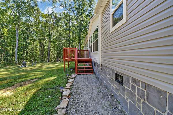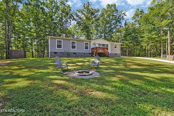 Welcome to Mossy Grove! This spacious 3 bedroom 2 bath home has an open floor plan creating a welcoming flow between the living, dining, and kitchen areas. The kitchen is the heart of the home with a huge island, abundant cabinetry, and modern design - all overlooking the beautiful backyard. The primary suite offers dual vanities and a walk-in shower, while the split layout provides privacy from the additional bedrooms. Sitting on 7 acres, this property is perfect for homesteading, starting a family, or establishing a small farm. This manufactured home on a permanent foundation features two freshly painted decks that invite you to relax and enjoy nature - the front deck overlooks the yard with a firepit for gatherings, and the back deck looks out over woods and seasonal mountain views (year-round with a little clearing). The property includes four large fenced areas with enclosures, ideal for pets, chickens, goats, or other livestock. A gravel driveway leads into your own wooded retreat, complete with hiking trails that open to a beautiful meadow and wet weather creek- perfect for hunting, recreation, or a future homesite. There is a small storage shed ready to be finished. Located on a county-maintained road, this property offers the peace of country living while staying close to town. Just minutes from Harriman or Wartburg, and near outdoor favorites like Frozen Head State Park, the Obed River, Brushy Mountain, and Windrock Park.