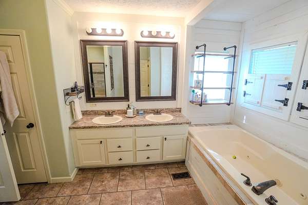 Luxurious Primary Suite: Retreat to the large primary suite featuring a generous walk-in closet and a spa-like bath with double vanities, a separate shower, and a jetted tub.