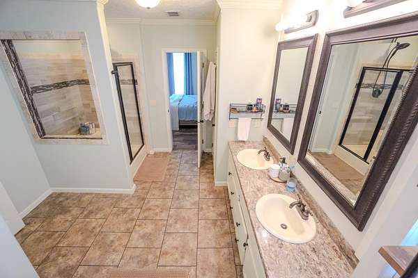 Luxurious Primary Suite: Retreat to the large primary suite featuring a generous walk-in closet and a spa-like bath with double vanities, a separate shower, and a jetted tub.