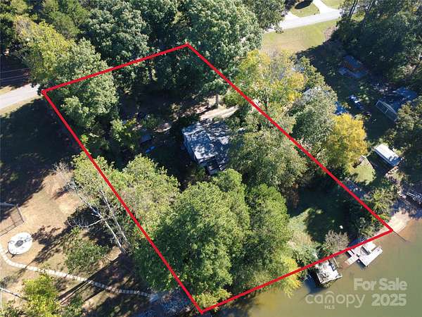 PRIME .71 ACRE LAKEFRONT BUILDING OPPORTUNITY with NO HOA! Stop searching and start designing! This is a rare opportunity to acquire an expansive .71 acre waterfront lot perfectly positioned for the creation of your custom dream home on the lake. The value is squarely in the land, its lack of HOA restrictions, and the exceptional, pre-existing lake amenities. This lot is situated on an amazing cove, offering a distinct advantage for lake lovers. A cove location provides shelter from heavy boat traffic and high winds, creating calmer waters perfect for paddleboarding and kayaking. The property boasts an impressive 154 feet of shoreline and features a significant benefit: an existing private pier and floating dock are grandfathered-in and are conveyed with a permit, offering the legal entitlement to install a new and modern pier and dock structure for future enjoyment. The lot benefits from existing infrastructure, including an existing well and septic system. The generous lot size provides ample space for a significant luxury home, extensive landscaping, and outdoor living areas. Investor and Builder Alert: The lot's superb features and location make it an excellent piece of inventory for a custom builder's portfolio. The existing structure and any additional structures are currently in need of extensive work and are being sold strictly AS-IS. The seller makes no representations regarding their condition or functionality. Focus on the Future: Don't miss this chance to secure a coveted, unrestricted piece of lakefront paradise. The true value is the dirt and the dock permit! Buyer/Agent to verify all information, including the water depth, the condition and function of the existing well and septic system, and owner is working with Duke Energy to provide the status/transferability of the pier and dock permit.