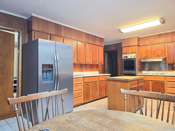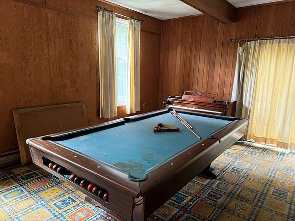 Stately CUSTOM-BUILT 1958 Cape Cod style home sitting on 1.78 acres w/ 2-car detached garage in one of the most sought-after neighborhoods in Tazewell County. A ONE-OWNER home was built w/many of the amenities required for a spacious home. The beautiful oak floors in most of the rooms has been well maintained. The first floor has a nice foyer, large living room w/a wood-burning fireplace, formal dining room w/a swinging door that enters the eat-in kitchen. The kitchen has lots of cabinets w/an island, double ovens, cooktop, stainless fridge, & a pantry. Just around the corner from the kitchen is the laundry area that includes a washer/dryer w/cabinets above. The family room has another brick fireplace w/raised brick hearth, pegged wood floors & a sliding door to a large covered screened porch. There are 4/5 bedrooms & 4 1/2 baths. On the first floor there are 2 bedrooms - one is a primary suite w/3 closets, two oak cabinets that remain, private bath w/tub & separate shower, double vanity & vintage tile. There is a half bath and the stairs are rear entry. The second bedroom is an ensuite with a double closet & private full bath w/tile shower (again, another vintage bath). The rec room is on the opposite side of the house and has incredible space - well over 500 sqft with a 3rd fireplace! It's definitely large enough for a pool table & other gaming tables or entertainment areas. Upstairs is spacious - two additional ensuite bedrooms with full baths, an office, a heated BONUS room & large walk-in space & a loft area w/built-in bookshelves & again, tons of storage! The windows are storm windows! There's a NEW ROOF & GUTTERS & two heat pumps provide the heating/cooling. The electric service was just updated! There is a basement that once housed a furnace. Outside this home is brick & has a large paved driveway & great parking. There is so much opportunity with this home & it could be brought back to life to an original state! This property is being sold AS-IS.
