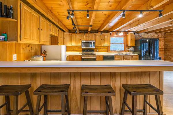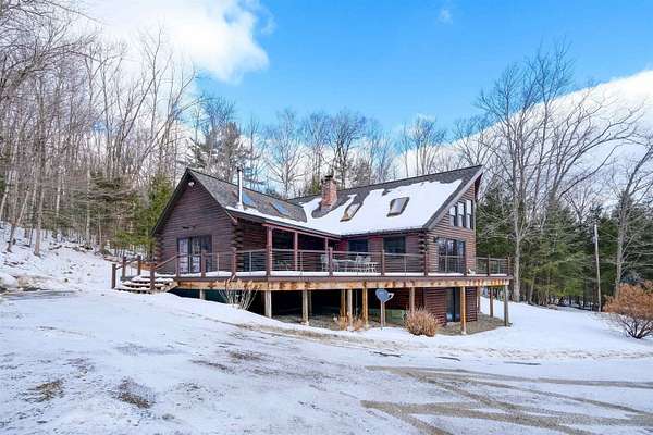 Welcome to the House of Fives--ideally located five miles from Okemo, five minutes to Ludlow, and offering five bedrooms for comfortable mountain living. This spacious log home features two great rooms plus a third living area, providing ample space to spread out for one or even two families. The open-concept main level seamlessly connects the kitchen, living, and dining areas, centered around a wood-burning fireplace insert. With two sets of sliders and overhead windows, natural light pours into the space, creating a bright and inviting atmosphere. Step outside onto the large deck to further enhance your outdoor living experience. The expansive unfinished area of the lower level offers a blank canvas for a game room, workshop, or additional storage. A fun loft overlooks the main living area, while knotty pine paneling throughout delivers a warm, classic cabin feel. Outdoor enthusiasts will love the direct access to the VAST snowmobile trail--ride right from your home, with plenty of room for friends to park their sleds too. Set on 23 acres, the property even offers the opportunity to create your own private trails through the woods. Visit the Okemo real estate community today. Taxes are based on the town assessment.