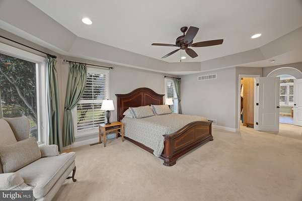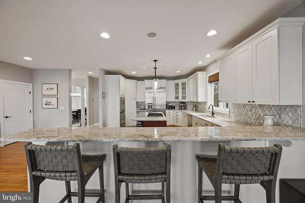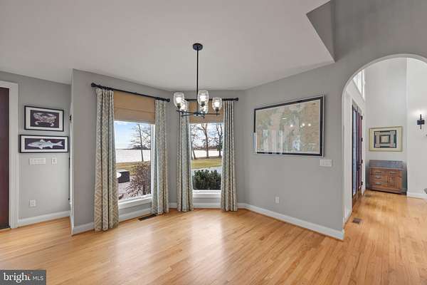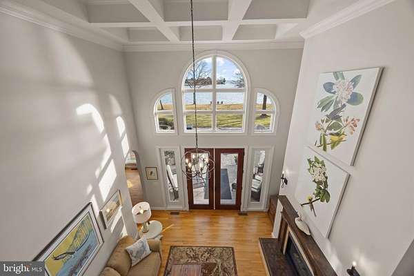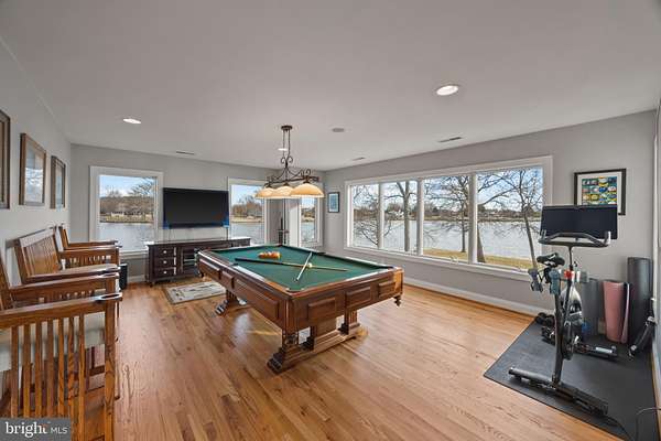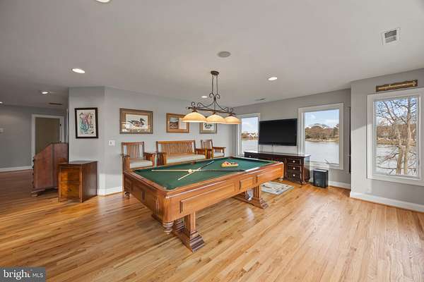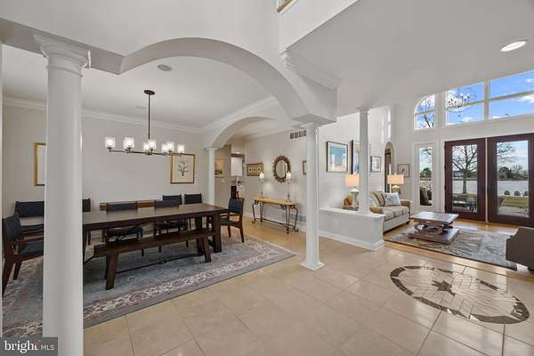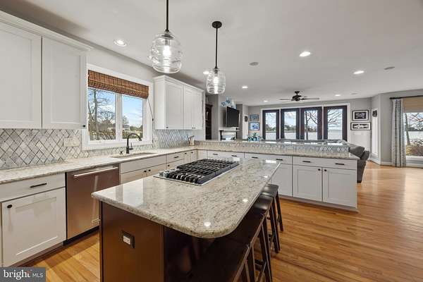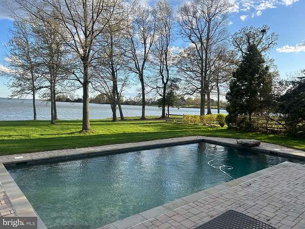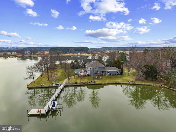 Welcome home to this stunning waterfront property in Cove Creek Club on Kent Island. This remarkable five bedroom, four bathroom home offers an unparalleled blend of privacy, elegance, and panoramic coastal beauty all located on your very own private peninsula. With an impressive 566 feet of protected shoreline where Tanner's Creek converges with Cove Creek, opening directly to the Eastern Bay, this southern-facing residence offers breathtaking water views from nearly every room. Upon entering, you're greeted by a dramatic two-story foyer with soaring vaulted and coffered ceilings that set an immediate tone of refinement, drawing the eye straight through to the large backyard and shimmering water views beyond. The thoughtfully designed main level features high ceilings throughout and a serene primary suite with views of the pool and waterfront. The primary retreat offers a custom walk-in closet with built-ins, tray ceiling, and a spa-inspired bath with dual vanities, private water closet, soaking tub, expansive walk-in shower, and plantation shutters for added privacy. Upstairs, enjoy a recreation room with wide angle water views and balcony perfect for enjoying sunsets while playing a game of pool or darts. Four additional bedrooms can be found here as well, two on either side of the home sharing jack-and-jill style bathrooms with private closets. Designed for effortless entertaining and elevated everyday living, the open-concept living and dining spaces flow seamlessly from the beautifully updated kitchen. Here, refined finishes include soft-close cabinetry, granite countertops, a marble backsplash, center island, walk-in pantry, stainless-steel appliances, gas cooktop, wine refrigerator, and warming drawer. The kitchen opens to an inviting living room with sliding doors to access the outdoor living area. Outside you'll find extensive hardscaping with a built-in grill, granite countertops, and a granite dining table seating eight, perfect for hosting refined waterfront gatherings. The resort-style backyard is a private sanctuary, featuring a sparkling pool and a private pier equipped with three boat lifts-ideal for boating, paddle boarding, crabbing, or simply enjoying sunsets accompanied by visits from blue herons and bald eagles. Professionally designed landscaping offers year-round color with mature plantings all complemented by a lush, level lawn maintained by a multi-zone irrigation system. Additional highlights include a spacious three-car garage with room for vehicles, golf carts, and storage, along with premium finishes throughout that reflect timeless craftsmanship and meticulous attention to detail. As a resident of Cove Creek, enjoy access to an exceptional array of private amenities including a USGA-rated golf course, deep-water marina, private beach, clubhouse, fitness center, tennis, pickleball, and bocce courts, boat ramp and storage yard, as well as miles of scenic walking and biking trails - all located on Kent Island, just minutes from the Chesapeake Bay Bridge and Route 50.