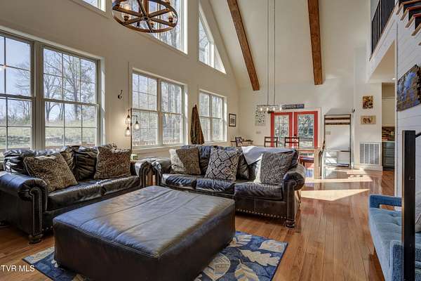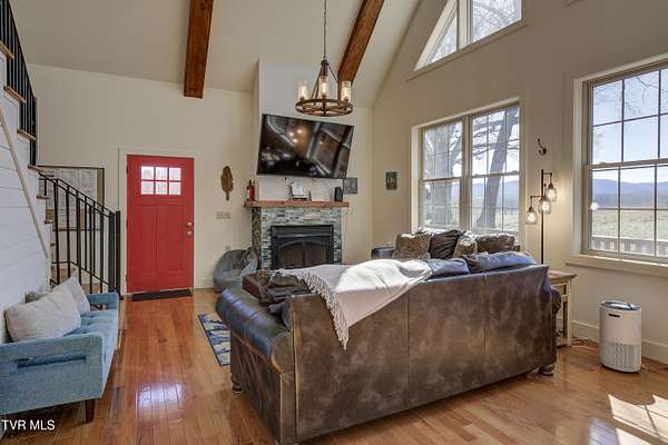Welcome to 137 Unaka View Road in Johnson City, TN - a stunning, better-than-new home with breathtaking views of Buffalo Mountain. Built in 2021, this thoughtfully designed property offers a perfect blend of modern style and country charm. The main level boasts a luxurious primary bedroom with an impressive, spa-like shower. The bright and airy kitchen is a chef's dream, featuring a propane gas range, a striking copper farmhouse sink, and ample storage space. The adjoining pantry and laundry room connect conveniently to the primary closet, adding a touch of everyday ease. A soaring vaulted ceiling and a dramatic wall of windows invite natural light and showcase the spectacular mountain views. Upstairs, you'll find a unique built-in bunkbed area, a full bathroom, and additional storage, making it an ideal space for guests or family. The spacious unfinished basement offers endless possibilities, with a large double garage door providing easy access. Situated on 4.73 picturesque acres, the property is a blend of wooded and cleared land, ready to accommodate your future plans. An RV parking area with water and electric hookups adds to the property's versatility. Enjoy the peaceful, rural ambiance while being conveniently close to town, with the added benefit of county-only taxes. Relax and unwind in the brand-new hot tub on the expansive porch, taking in the magnificent views. Currently operating as a successful short-term rental on Airbnb, this home offers an excellent investment opportunity. It can be sold fully furnished or unfurnished, tailored to your needs. Don't miss the chance to own this one-of-a-kind mountain retreat. Schedule your showing today and experience the best of East Tennessee living at 137 Unaka View Road! All information is deemed reliable, but not guaranteed. Buyer / Buyers agent to verify any / all information.