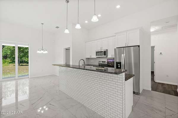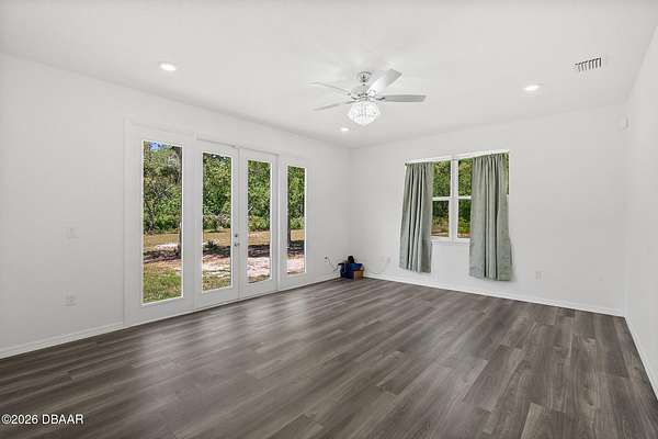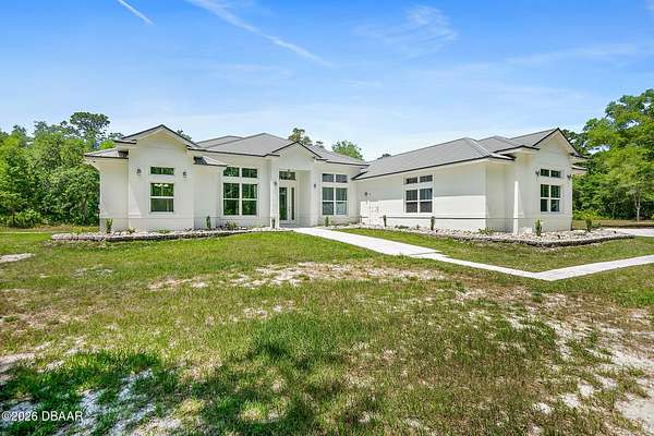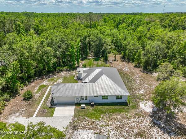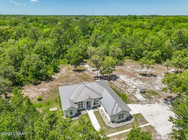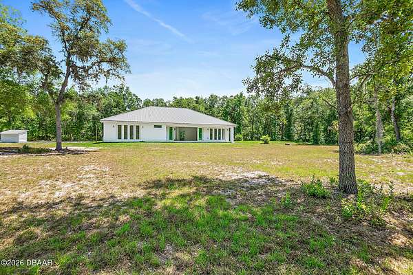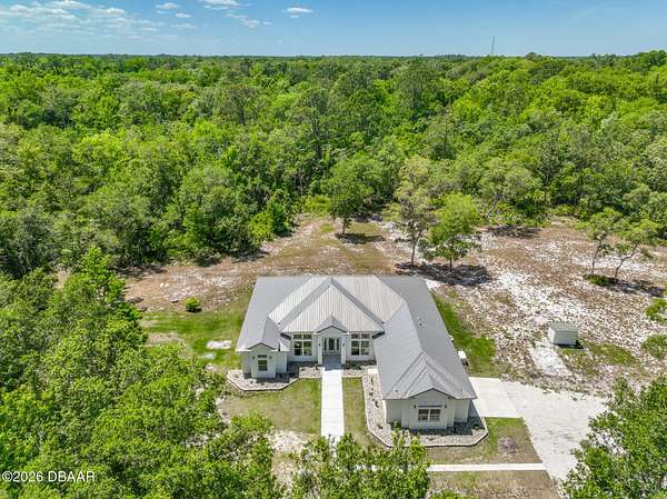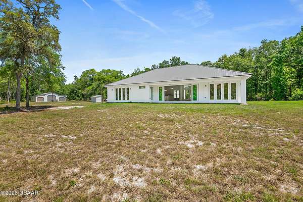 Country living at its finest! Mountains of memories await your family at this beautiful acreage estate. If you have dreamt of a home on a sprawling piece of property, you have found it! This 5 Bedroom 3 Bath Custom West Indies-style home boasts over 2800 sq. ft of space and sits on over 27 gorgeous acres of land. The property includes a freestanding barn, making projects easy and providing space for all your Horses, big toys and Florida lifestyle gear! Built in 2024 the bright, airy home offers a fantastic open floor plan which is perfect for family living and entertaining. And, with the sliding doors opening out to the patio, the living space extends outside. The family cook will love the modern kitchen featuring stainless steel appliances, breakfast bar, large pantry, and beautiful tile backsplash. The kitchen overlooks the great room featuring 11-foot ceilings and a beautiful view overlooking the lush acreage. The home also offers a family room with access to the outside. When night falls, the large master suite is an oasis with huge walk-in closet, patio access, and ensuite bath boasting walk-in shower with custom floor to ceiling tile, and double vanity sinks. The home also features 4 spacious guest bedrooms, two additional full baths, separate laundry room, and attached oversized 2-car garage. Just outside, it's a short walk to the peaceful serenity of the creek and the large cleared yard offers a great place for playing catch with the kiddos or fetch with Fido, and plenty of room for your future pool and tiki bar! The extras continue with soaring ceilings between 9-11ft, 8ft exterior doors, and loads of big, beautiful windows including Transom windows in some rooms to bring in even more natural light. Buyers also enjoy added peace of mind with Metal Roof, Emergency Generator with 10 year warranty, 6 Camera security system with video recording, 500 gallon owned underground propane tank, Concrete block walls filled with concrete, and alarm system. Wide open space: So, bring your Horses, RV, boat, gardening gear, kids, pets & all your friends and family because with 27 acres of land there's tons of room for everything you love here! All the peace and quiet you want, but still close enough to what the city life has to offer. Don't delay. Schedule your showing today!