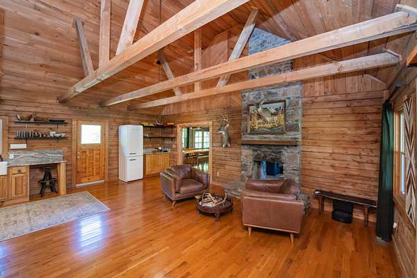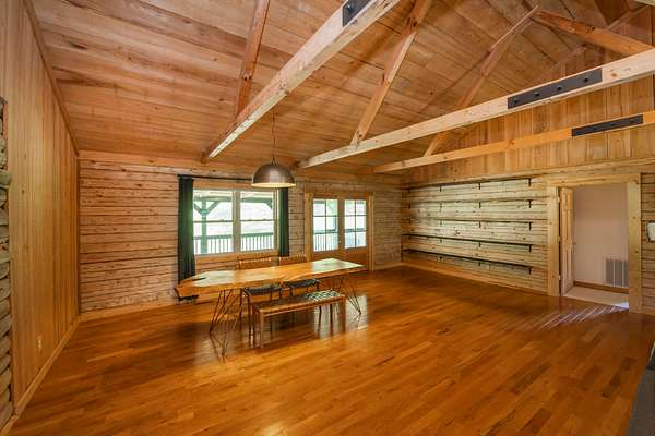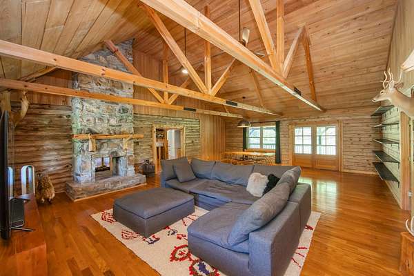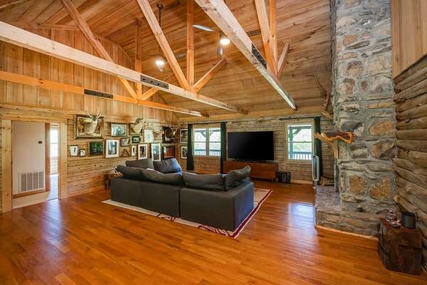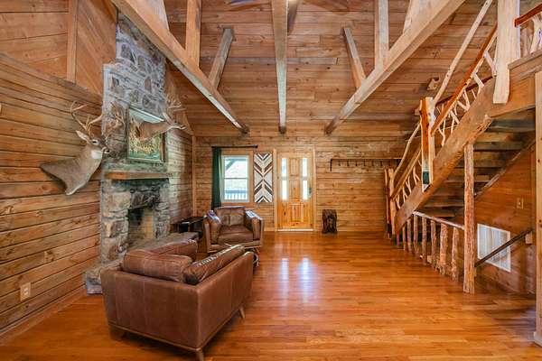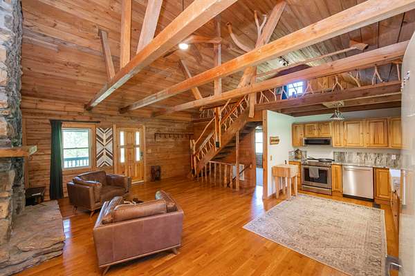 96.04 acres of pure Tennessee escape! Loaded with wildlife, total privacy, and even your own cave. Striking black log cabin blends rustic charm with modern edge, set against a private, wooded backdrop for the ultimate retreat featuring an open floorplan, renovated kitchen with granite countertops, stainless steel appliances, and an incredible layout built for multifunctional living. Incredible upgrades throughout. Step outside and the real show begins—hunt, explore, ride, or build your vision across nearly 100 acres of usable land. Modern meets rural with a fast EV charging station already in place—rare convenience in a setting like this.