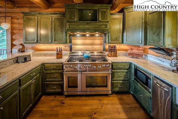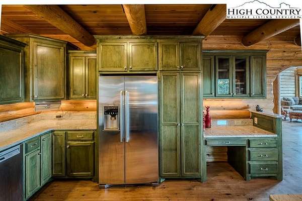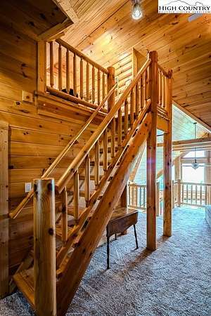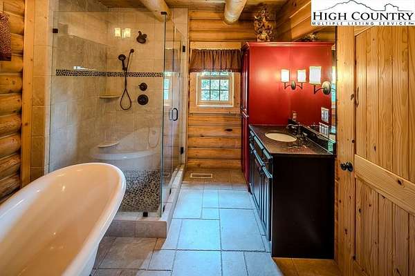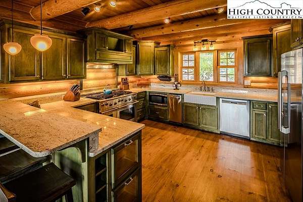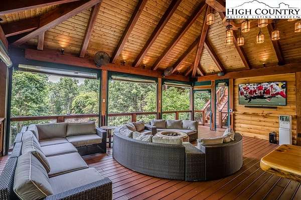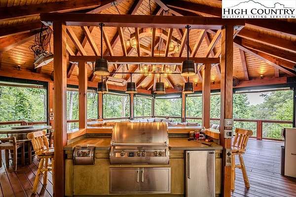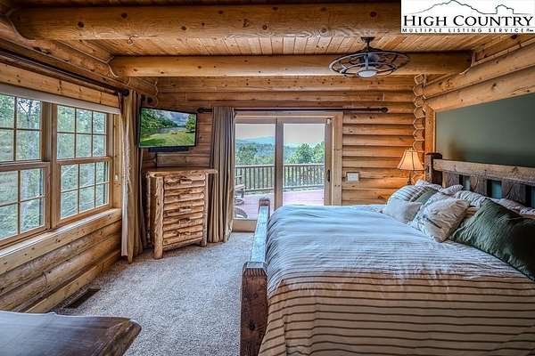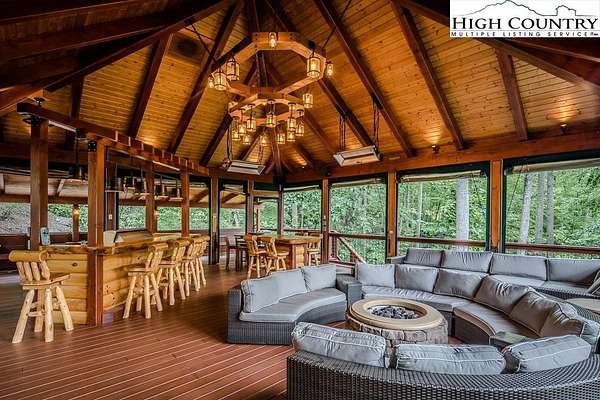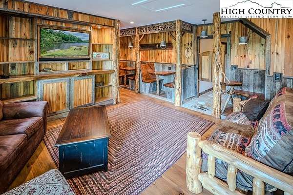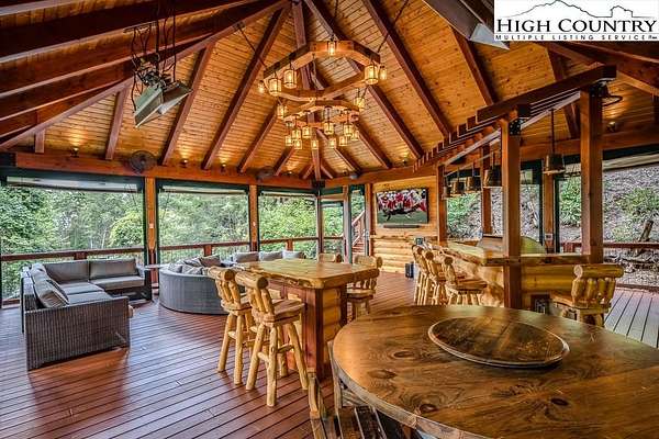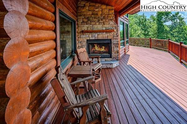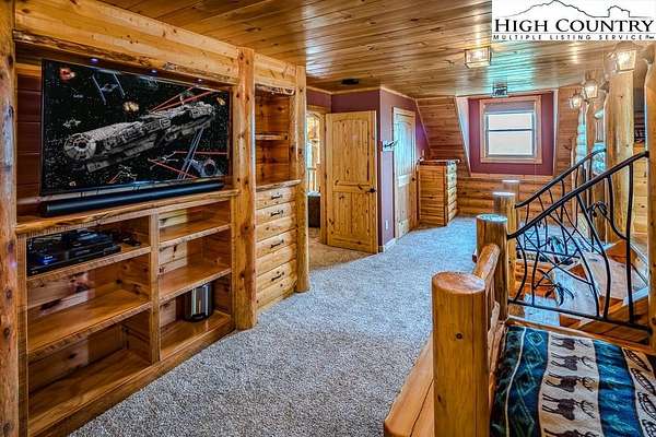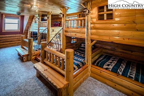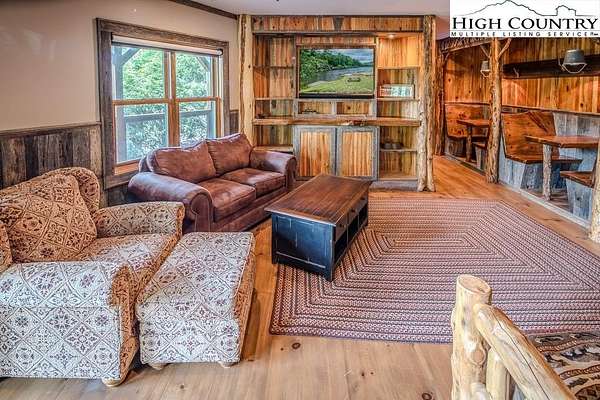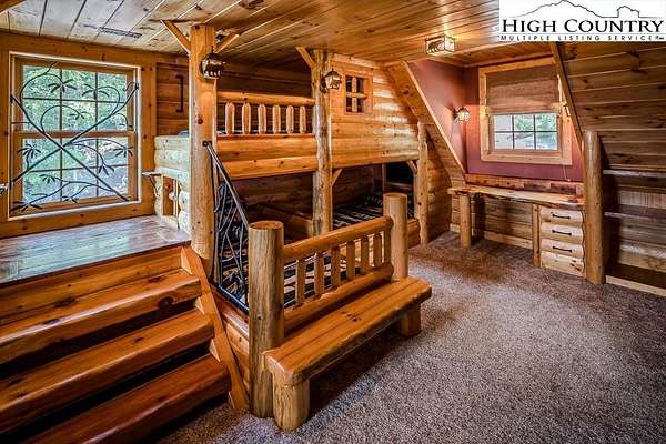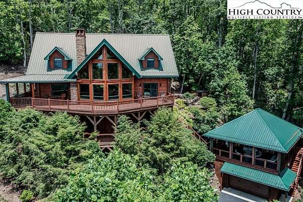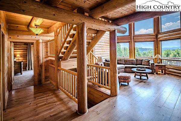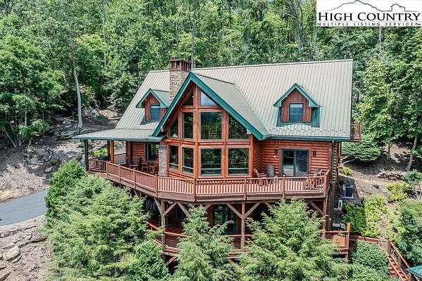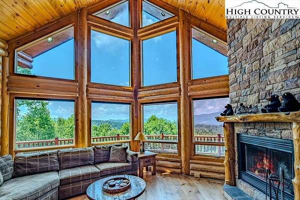 Stunning Log Home with Long Range Views situated on 4.47+/- acres. Sold Furnished! Your own Private Paradise located in The Headwaters At Banner Elk Gated Community. This Custom Log Home offers Soaring Cathedral Ceilings, Open Floor plan with Real Hardwood Floors, Custom Built Cabinets with Granite Countertops, Gas Range, etc. Main Level Living: Kitchen, Dining, Great Room, Laundry, 1/2 Bath and Master Suite. Upstairs you have a Large bedroom, Custom 6 Bed Bunk Room, Loft/Office Area and 1 Bath. Up another set of stairs you will find a Children's Sleeping and Reading Loft with 3 more beds. This Incredible Home has a Unique Den in the basement you must see! Complete with Built in restaurant style seating areas, Workstation, Custom Built-In Shelving, Safe Room with New Minisplit installed 2019, Whole House Water Filtration System, Guest Quarters, Full Bath, Mud Room and Attached 2 Car 21'x20' Garage. 2 Gas Lit Woodburning Fireplaces, Gas Firepit In Entertainment Gazebo with 2 Gas Heaters. You'll enjoy taking in the evening Sunsets from the Wrap-around Decks with Outdoor Fireplace. In addition, built in 2018 you have an Expansive Covered 1400' Outdoor Entertainment Gazebo above an Oversized 30'x26' Detached Garage/Workshop. 2019 Minisplit installed in Oversized Garage/Workshop. There is also a unique opportunity with home purchase to buy a 1/8th share in 170-Acre Nature Preserve adjacent to Headwaters. Here you can ride your UTV or hike straight from your driveway to the 170. There are 8 owners of this amazing property, all live in Headwaters. Miles of trails from Mild to Wild, Shooting Range, Hiking, Picnics, etc. Falls Creek meanders through the property. It's your own little slice of paradise. For Medical Emergencies a Helicopter can land in parking lot at Clubhouse. Inside the gates you'll have access to a Beautiful Mountaintop Clubhouse with Fitness Center, Game Room, Theater Room, Gourmet Kitchen, Dining Area, Great Room with Fireplace & Tennis/Pickle Ball Court. Within the development your family can also enjoy the Lakeside Pavilion, Stoney Creek Park, Deer Creek Park, Sunset Park, Mac N Tosh Dog Park, Natural Waterfall, etc. Just a short drive to downtown Banner Elk and all Area Attractions such as Skiing, Hiking, Whitewater Rafting, Plays, Concerts in the Park, Golf, etc. Virtual Tour Available & Floorplans! What Are You Waiting For! Schedule A Tour Today! *Note: 3rd floor "Children's Sleeping and Reading Loft is 318' Heated but has a ceiling height area exclusion so it can't be counted as square footage. Listing is Limited to Only 50 Photos therefore, No Room to Show Bathrooms, Laundry Rm, Garage, Grounds and Additional View Photos. Must See In Person! Please Note 7 Night Minimum for Short Term Rentals.