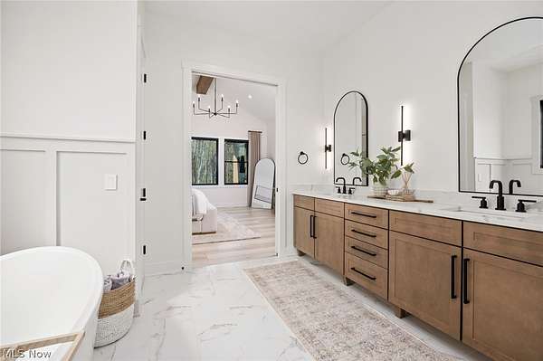 Welcome to this stunning custom-built home completed in 2021, offering the perfect blend of modern design and everyday comfort. Featuring 4 spacious bedrooms, 4 full bathrooms, and 2 half baths, this beautifully maintained property showcases an open concept floor plan ideal for both entertaining and daily living. The heart of the home boasts a large, well appointed kitchen with ample cabinetry, a walk in pantry, and generous space for gathering. A convenient mudroom adds everyday functionality and organization, making busy lifestyles effortless. Natural light fills the home, highlighting the high-end finishes and thoughtful attention to detail throughout. The partially finished basement provides additional living space and the perfect opportunity for the new owner to add their own finishing touches and truly make it their own. A 4 car garage offers plenty of room for vehicles, storage, or hobbies. Situated on 2.15 private acres, this property backs up to a serene wooded lot, offering peaceful views and added privacy. Located in desirable Sharon Township within the Highland Local School District and with no income taxes this home truly has it all. Don't miss your opportunity to own this exceptional property!