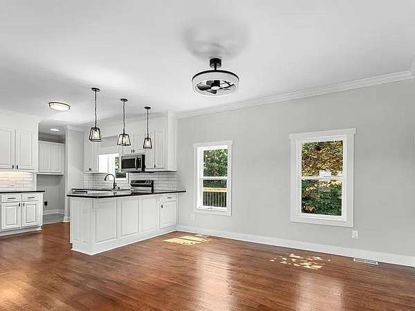 Welcome to Liberty! This newly remodeled 5 bedroom home has a gracious southern front porch. Front door opens into wide open living space with hardwood floors. The master has a luxurious soaking tub with a separate shower. Two other bedrooms on the main level share a bath. Upstairs has a fabulous open den/play area which separates two other bedrooms and the third bathroom. Laundry room is located on the main level. It opens to an expansisve back deck with steps down to a sitting area with firepit. Home is located on 5 acres and located just 5 minutes from public boat ramp.