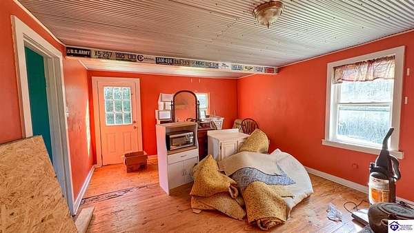 Discover the potential of this quaint 2-bedroom farmhouse nestled on 136.39 acres of beautiful countryside. The home features cozy hardwood floors, a wood stove for those chilly evenings, and a classic claw foot bathtub with a shower. This property is perfect for those looking to add their personal touch and bring this fixer-upper back to life. The land is a mix of mostly wooded areas with some open, clear spaces, ideal for various outdoor activities. Two barns offer ample storage or farming potential. A serene spring runs beside/on the property, adding to the peaceful atmosphere. Although the pond has dried up, the land still offers plenty of opportunities for new owners. This farm is a unique opportunity to create your dream rural retreat!