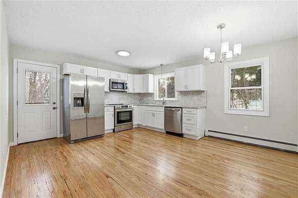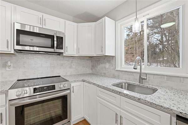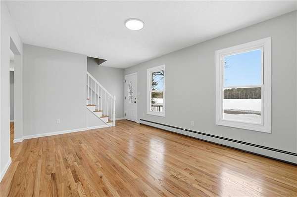 Just over the Connecticut line, this fully renovated 5 bedroom home sits on nearly 2 acres and offers Rhode Island buyers the opportunity to get more space and land without sacrificing convenience. Located minutes from the RI border along Plainfield Pike, the property provides easy access to Coventry, Foster, Scituate, and I 395 while still enjoying the charm and space of rural eastern Connecticut. Inside, the home has been completely refreshed from top to bottom with new hardwood floors, windows, doors, trim, lighting, electrical updates, and a brand new heating system that provides tankless hot water. The redesigned kitchen features white cabinetry, stone countertops, stainless steel appliances, and a clean tile backsplash, creating a bright and functional space for everyday living. With 5 bedrooms and 2 fully remodeled bathrooms, the home offers more flexibility than most properties in this price range, whether for guests, home offices, hobbies, or additional living space. The clean unfinished basement with hatchway access provides excellent storage and potential for future finished space. Outside, the refreshed deck overlooks nearly 2 acres surrounded by mature trees, offering plenty of room to enjoy the outdoors. A rare opportunity to own a fully renovated home with land and space just minutes from Rhode Island.