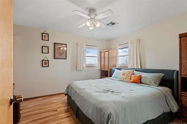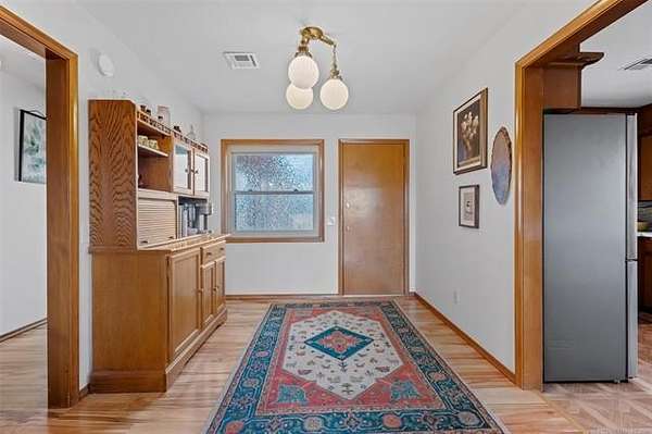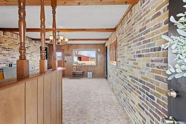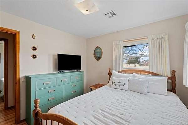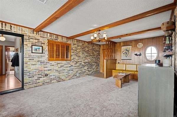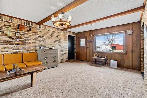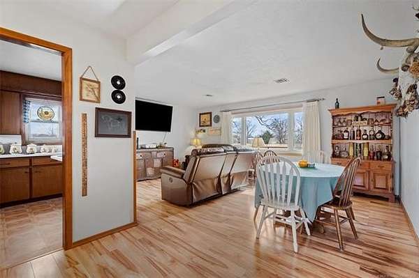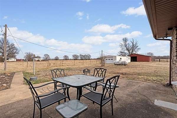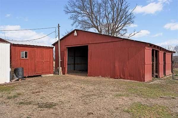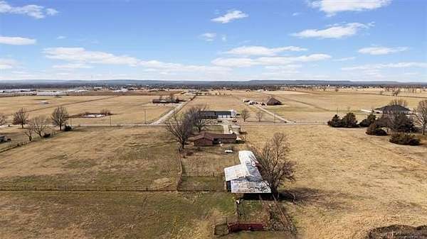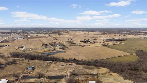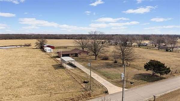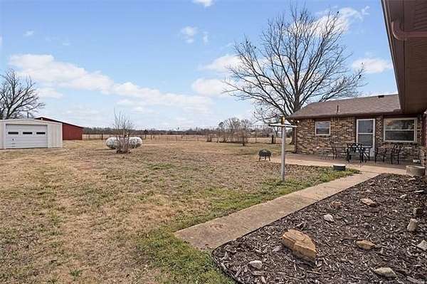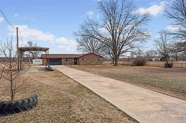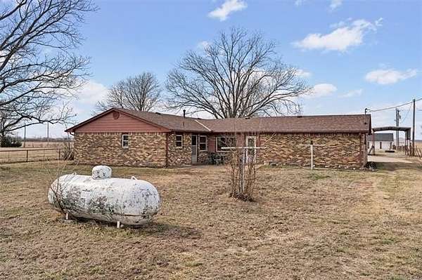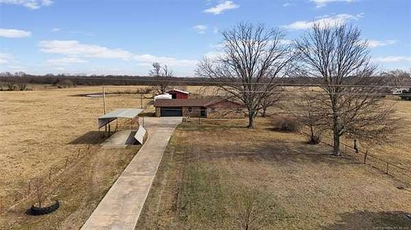Opportunity meets functionality on 20 acres with paved road access all the way to the home. Located just north of Dewey, minutes from Copan Lake, and with quick access to Hwy 75, this property delivers the convenience buyers want without sacrificing space or privacy. The 3-bedroom, 2-bath home sits on fenced acreage and features distinctive brick walls, warm wood floors, and a mid-century modern feel that sets it apart from typical rural properties. Large windows bring in abundant natural light, and the flexible front living space plus generous utility area create a layout that adapts easily to everyday living. Step outside and the property truly shines. The pasture is a productive mix of fescue, lespedeza, and bermuda, well-suited for livestock. Improvements include: Barn with stalls, Two pipe corrals (one with barn and loafing shed, one with chute and head gate), Tack shed, Covered RV parking, Garage, Large finished workspace with built-in cabinetry ideal for an office, hobby space, or equipment storage. The pond and open pasture provide both function and beauty, while the established fencing and infrastructure make this a true turnkey setup for horses, livestock, or agricultural use. If you're looking for acreage near Dewey with paved access, livestock facilities, and character you can't replicate, this one checks the boxes.