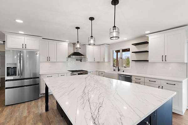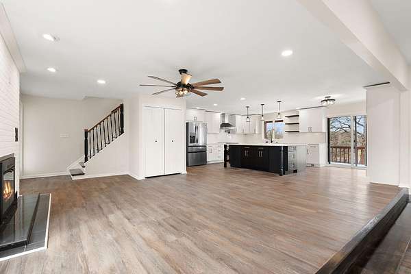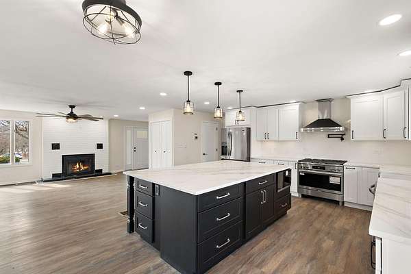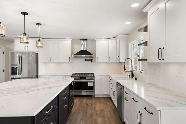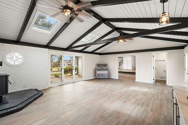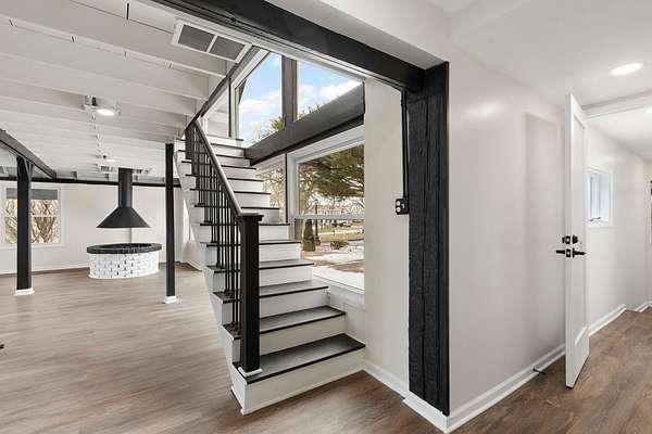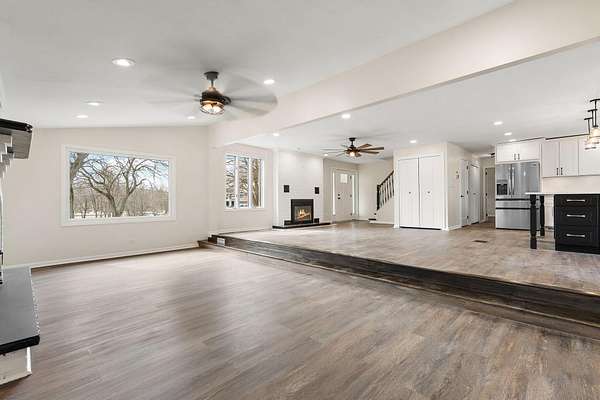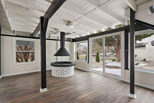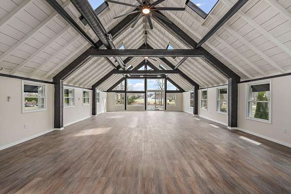 Set on 3.23 acres in Dyer, this fully reimagined 4 bed, 5 bath estate has been completely gutted and rebuilt with exceptional attention to detail, offering a rare blend of luxury, functionality, and privacy. The open-concept kitchen is designed for both everyday living and entertaining, featuring new stone countertops, a coffee bar, and a full suite of oversized stainless steel appliances. The kitchen flows seamlessly into the right wing of an impressive 1,728 sq ft great room, creating a true centerpiece of the home while the sunroom provides a bright, relaxing extension of the living area. Flooring throughout includes a refined mix of luxury vinyl, hardwood, and tile, with bathrooms finished with glass enclosures and modern, spa-like touches. Refurbished Andersen windows, along with new window installations, allow for abundant natural light throughout the home. Designed for comfort and efficiency, the home features a geothermal HVAC system with a redundant backup system, along with a 4-ton commercial-grade unit dedicated to the great room. Additional interior features include a sauna with a bathroom, a bonus room with two built-in mini refrigerators, and an internal vacuum system located in the garage. The exterior has been just as thoughtfully improved as the interior, featuring full-property tree trimming, newly installed grass/sod where needed, and a freshly resurfaced driveway. The property offers scenic pond views, mature mulberry and pear trees, a BBQ pit, an original well to be converted into a planter, and a brand new septic system. Additional highlights include a 1,536 sq ft pole barn, additional parking, and a newly poured concrete 2-car garage with new doors and updated lighting. Motion-sensor lighting surrounds the entire exterior for added convenience and security. Ideally located with easy access to major highways, this property offers both privacy and accessibility. Don't miss your opportunity to make it yours!