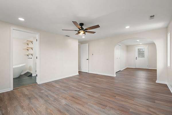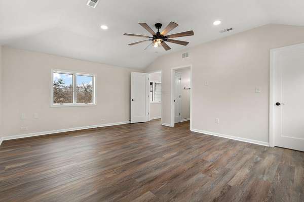 - Ceiling Fan(s), Crown Molding, Double Vanity, Eat-In Kitchen, High Ceilings, His and Hers Closets, Kitchen Island, Open Floorplan, Pantry, Recessed Lighting, Soaking Tub, Stone Counters, Vaulted Ceiling(s), Walk-In Closet(s), Wet Bar