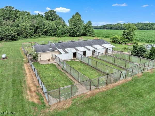Turnkey Country Homestead with Business Potential! Escape to the peace and possibility of country living on this 14-acre fully equipped homestead for comfort, self-sufficiency, and serious income opportunity. Whether you're dreaming of a hobby farm, a full-scale boarding or breeding business, or simply space to spread out and enjoy the land, this rural retreat has it all. The home has nearly 3,200 sq ft and is energy-efficient, powered by geothermal heating and a 22kW whole-property generator, with wide 3-ft doorways for accessibility. Inside find A charming farmhouse kitchen featuring real oak floors, custom Kemper oak cabinetry, 3 ovens, 2 refrigerators, and space to gather, bake, and entertain in the spacious 18x24 layout. Front enclosed porch has been a perfect spot for birdwatching. A first-floor laundry and full bath with walk-in shower for convenience. A stunning oversized dining room, perfect for hosting holidays and Sunday dinners, flows into a log-cabin-inspired 4-seasons room, brand new in 2024. A massive primary suite with a private en-suite bathroom. A cozy step-down living room with high ceilings, new carpet and room to relax. Upstairs: another oversized bedroom with its own private balcony, a third bedroom, and a full bath with jetted tub, walk-in shower, and double sinks. Outside, the opportunities multiply: 25 climate-controlled kennels (each with heat/AC and wood burners), bathing/grooming station, and secure fenced play areas, perfect for boarding or vet services. A 3-acre open pasture ready for horses, goats, or other livestock. Two barns with versatile use options. This property is income-ready, with a proven history in kennel operations. Whether it's a dog boarding facility, 4H venture, goat dairy, or horse sanctuary, this place is built to support your vision. Roof is about 7 years old. This emergency ready homestead is just what you need! Invest today, work tomorrow and retire in comfort! Brand new garage door opener on the barn.