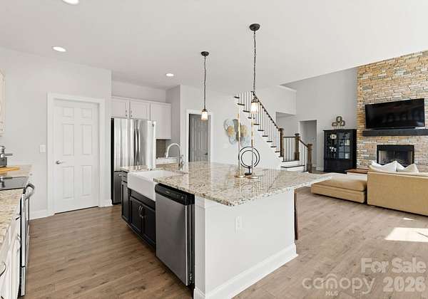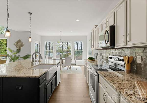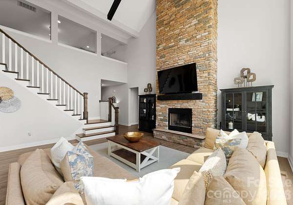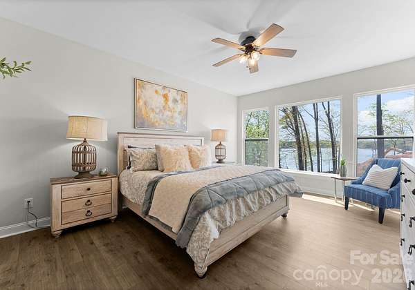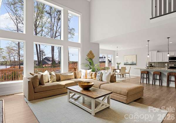 Sun-drenched interiors, soaring ceilings, and tranquil lake views define this refined Lake Wylie retreat on 3+ sprawling acres. Thoughtfully designed for both grand entertaining and effortless everyday living, the residence combines warm natural finishes with a crisp, modern palette to create an inviting, move-in-ready sanctuary on the lake. A dramatic two-story great room anchors the main level, showcasing a floor-to-ceiling stone fireplace, rich wood-tone flooring, and an expansive wall of picture windows that frames the treetops and shimmering lake views beyond. Designer lighting and carefully curated fixtures lend character, while the soft, neutral palette lets your furnishings and art take center stage. The open layout transitions seamlessly into a chef's kitchen featuring a large island, granite countertops, farmhouse sink, stainless appliances, abundant cabinetry, a light-filled breakfast area overlooking the lake, and an oversized pantry. Generous dining and living areas offer a sophisticated backdrop for holidays, game days, and intimate gatherings alike flowing outdoors to the large wooden deck. The main-level primary suite evokes a private spa, with a generous bedroom wrapped in windows, direct lake views, and a luxurious bath with dual vanities, freestanding soaking tub, and an impressive glass-enclosed shower. The primary closet offers exceptional storage and organization. A dedicated home office with barn doors creates a chic, quiet workspace bathed in natural light. A separate mud room and laundry room plus a stylish half bathroom for guests keep the main level beautifully organized and clutter-free. Upstairs an airy loft/playroom provides yet another relaxing gathering space, with open sightlines to the great room below and captivating lake views. Two spacious bedrooms share a well-appointed Jack-and-Jill bathroom and enjoy generous closets. The lower basement level extends the home's livability with a large second family room and an additional bedroom perfect for a theatre, fitness studio, or private guest suite. The unfinished portion offers excellent storage and future potential, already plumbed for an additional bathroom or second kitchen. With walls of glass capturing lake and wooded views from nearly every main living area, this residence embodies the effortless, indoor-outdoor Lake Wylie luxury lifestyle-simply bring your guests and a desire for retreat. Enjoy nearby McDowell Nature Preserve, offering miles of scenic hiking trails, with convenient access to Shopton Road, Highway 160, and 49/South Tryon, as well as grocery, shopping, and dining at Rivergate. Marinas in the area provide both dry storage and wet slips, with Terry's Marina and Love Cove Marina and Resort just a short golf cart ride or drive away. Newly paved road with no HOA.