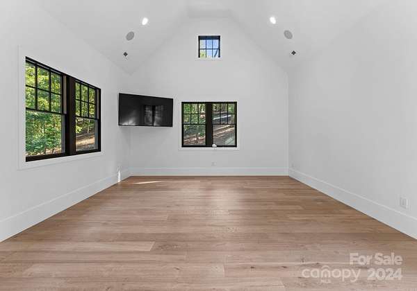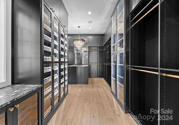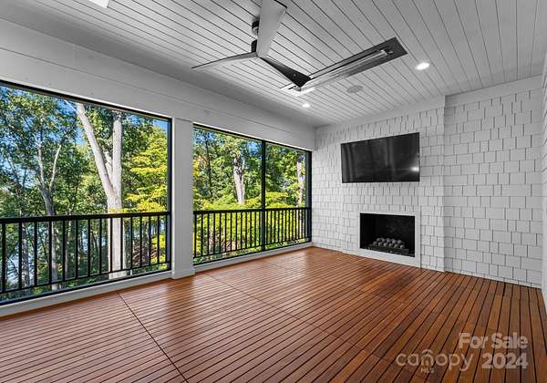 Private, gated modern estate on Lake Wylie situated on 3.9 acres. Meticulously designed home with luxury details throughout. Pivoting front door, open floor plan & water views from almost every room. Retractable doors in the great room & kitchen open to the lakeside screened balcony for entertaining. The gourmet kitchen is spectacular with the backlit cristillita quartzite countertops & entertaining bar. The oversized primary suite features a fireplace & walkout balcony with retractable doors. The spa like bathroom has a soaking tub, double entry shower doors, backlit countertops, and recently installed custom closets and lighting. Additional features include: Scullery,4 BR on the upper level with a recreational room,bonus room & 2nd laundry room: lower level has an oversized great room, bonus/flex rooms, home gym, theater room and a lakeside garage Outside features: pool off the kitchen, in-ground trampoline & multiple entertaining areas. Renderings available for a new private pier.