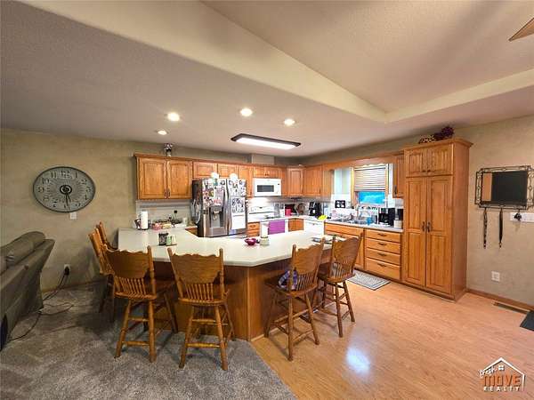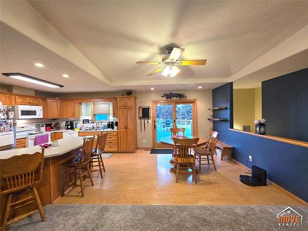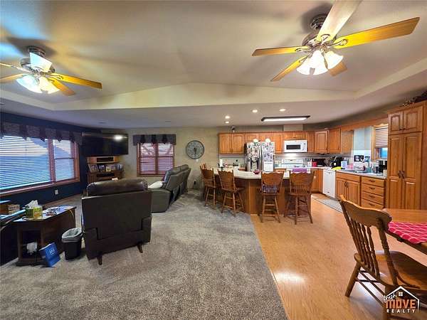 This beautiful home, built in 2001, sits on 8.6 acres and offers peaceful country living. The open-concept layout creates an easy flow between the living, kitchen, and dining areas, making it well suited for both everyday use and gatherings. The home includes three bedrooms, a large bonus room, and three bathrooms. The primary bedroom features a large walk-in closet and a private bathroom. Step outside to the huge deck, perfect for enjoying the views and entertaining, with a well-established shelter belt providing privacy and protection from the wind. The property is well equipped with a 2-car attached garage, a large shop, and a large lean-to. It is fully set up for livestock or recreational use with corrals, a roping arena, feed bunks, and water troughs already in place. Located 10 minutes from Montezuma and only has 1.5 miles of well maintained dirt road. Don't miss out on this wonderful opportunity!