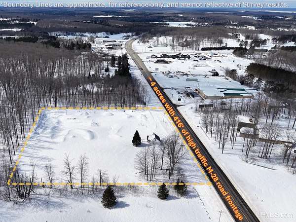 Est $573/mo4-acre parcel located directly on M-28 offering excellent access and visibility with nearby commercial activity, including national retailers such as McDonald's. Property features an existing structure with approximately 800 sq ft and a solid exterior, ready for a complete interior renovation. Ideal opportunity for a recreational basecamp, short-term rental project, or potential business location (subject to zoning approval). Cleared, usable land with a mix of open area and surrounding hardwoods. Conveniently located near snowmobile/ORV trails and access to public land throughout Luce County. Property is being sold as-is.