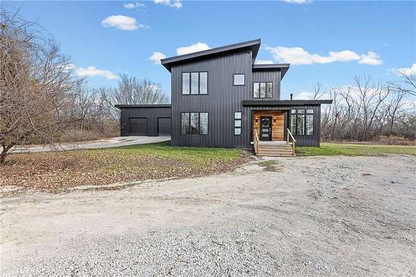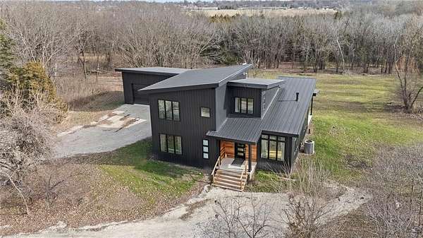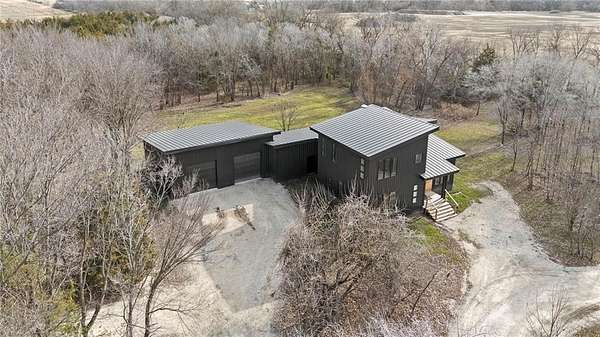 Discover a truly one-of-a-kind new construction set on 9.5 private, wooded acres, offering peaceful seclusion just 0.2 miles from the city limits on a paved road. This custom-built modern home pairs clean architectural lines with warm natural materials, creating a light-filled, open-concept design with soaring ceilings.