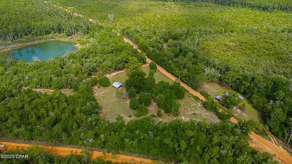 Waterfront Retreat at Econfina Springs Wildlife Management - Nature Lover's / Sportsman's Dream! Tucked in the country, living next to the Wildlife Management Area as it backs up to your almost 10 Acres on Sand Pond & your own private home. This 1980-built home offers the perfect blend of rustic charm and natural beauty. Wake up to the sounds of birds and nature just steps from your back or front door! With direct access to kayaking, fishing, and hiking, this is your everyday getaway. Inside, you'll find cozy, vintage vibes with updated touches, featuring warm wood finishes, an open living space filled with natural light, and from the large 16x20 deck, views of the waterfront. Whether you're sipping coffee on the deck or watching deer or turkey's wander by at sunrise & dusk, or fish your secluded pond for catfish or bream, this home makes every moment feel like a staycation. The deck is currently being redone and will be even more beautiful sitting under the Sycamore Tree. Large Shed and Large Pole Barn on site for every outdoors man storage needs. Deep Well for the best water around. Perfect for year-round living or a weekend escape, this is more than a home-it's a peaceful lifestyle surrounded by nature's best. Don't miss your chance to own a little slice of Old Florida paradise! Econfina Management Map available, No Flood Ins required, No HOA, Possibility to divide, and affordable home insurance. Located on County maintained clay road. Many Springs, Camping, Dog Hunts, and Hiking Trails in the area. Save yourself a lease fee and hunt local. Access from Hwy 77 or Hwy 20, Within 7 mile radius is Devil's Hole, Pitt/Sylvan Springs, Whitehead Landing, Rattlesnake Lake, Porter Pond & More. Roof (2019), Hot Water Heater, Plumbing, Electrical, AC (2022) have all been updated. New Septic Drain Field 2023. Located 40 minutes to Panama City, 20 minutes to i10 in Chipley, 10 Min (or 5 miles) to Sunny Hills Golf Course, and 16 min (7.3 miles) to Hwy 20 & Strickland Rd.