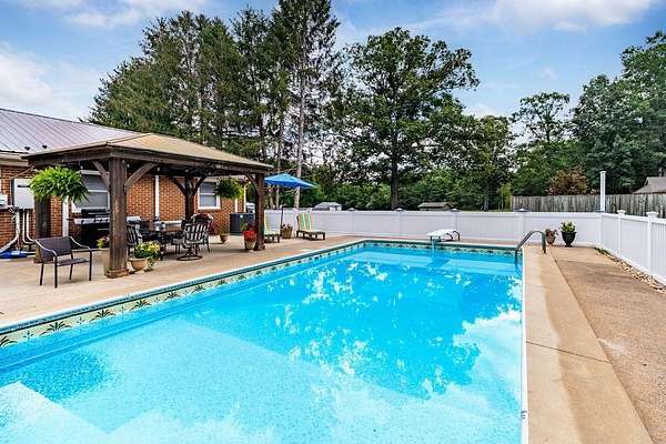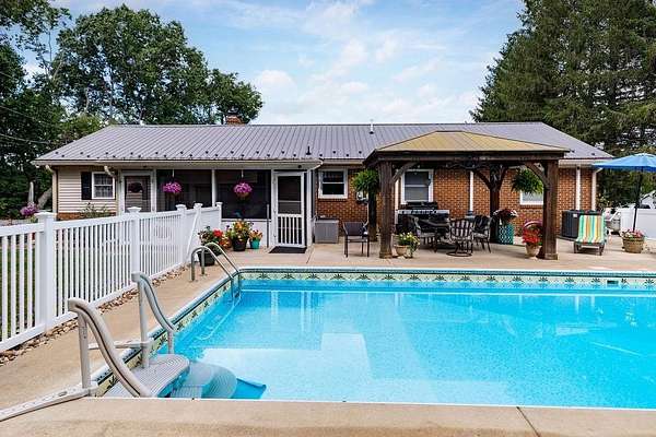 Dream Home Alert! This well appointed beautiful move-in ready ranch home with a metal roof has lots of space to spread out in. It boast 3 bedrooms, with the primary bedroom having it's own ensuite bathroom, a large living room with a pellet stove to keep you warm on those cold winter nights, a large dining room with a wood burning fireplace for the perfect ambience, a dreamy laundry room with a utility sink & a nicely sized kitchen to cook all of your holiday meals in. The basement offers lots of storage & a second living area just in case you need it. Don't worry about losing power this winter because it has a Generac Gas Generator for your convenience. This home sits on a 3.44 acre lot off of the road with a large detached garage for all of your car & work shop needs. It won't be winter forever so when the warm weather comes your dreams of having an inground swimming pool to beat the heat will become a reality because this one has an amazing inground pool surrounded by a big concrete patio with a pergola & just off of a screened in back porch. There have been so many updates you have to come check it out to believe it. This home is an entertainers dream & it is waiting for you! Call your agent before it's too late!!