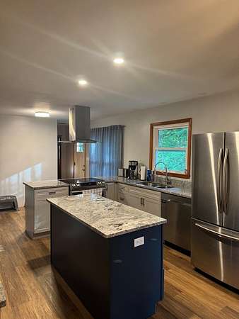 Motivated Sellers! This charming brick ranch offers the perfect blend of updates, space, and country feel while still being just minutes from town. Featuring 3 bedrooms and 1.5 baths, this home has been thoughtfully refreshed with a completely remodeled kitchen, new windows, and new flooring and paint throughout. Air duct cleaning as well! The home sits on a full basementpartially finished for additional living or storage space. Outside, you'll appreciate the new 2-car garage, new roof with an additional 1 car garage in the basement. This home has a beautiful enclosed back porch overlooking a 2.2-acre lot with a wooded view for privacy out the back and you can also enjoy a peaceful setting with a view of the neighbor's pond, making this property feel like your own slice of the country. Don't miss this move-in ready opportunity. schedule your showing today!