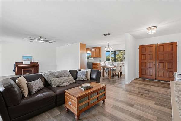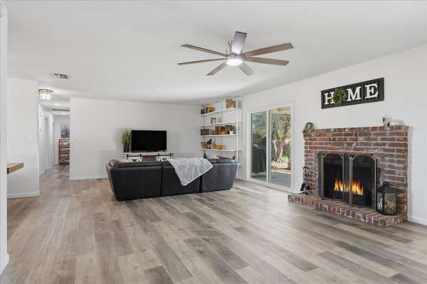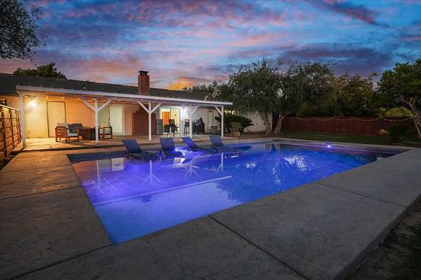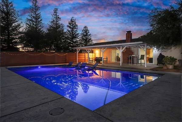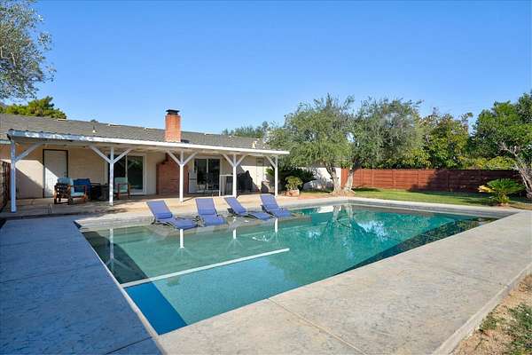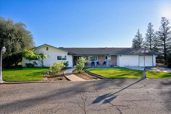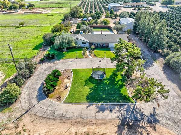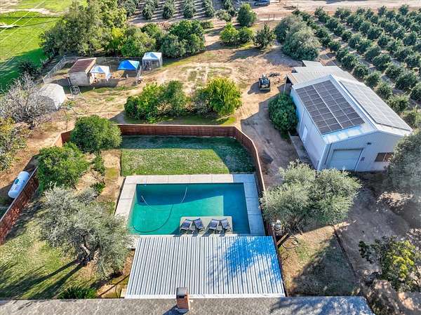 This inviting country charmer sits on just under 3 acres surrounded by mature landscaping and a gated circular driveway. A spacious 30'x40' metal shop with a roll-up door offers ample space for projects, storage, or all your recreational toys.Inside, a large mudroom conveniently located off the garage features a walk-in pantry, oversized storage room, and built-in nooks perfect for shoes, coats, or books. Plus, there's ample space for a dining area, office, or play zone. The expansive family room includes an open-hearth fireplace, two sets of sliding glass doors leading to the covered patio and a spectacular pool surrounded by beautiful newer backyard fencing. Each bedroom includes a walk-in closets to keep you organized. This home features low energy cost with paid for solar sending excess power to the grid. Newer dimensional composition roof will offer years of protection.Outdoors, enjoy a bountiful variety of mature fruit and nut trees including avocado, pomegranate, pear, lemon, several orange varieties, pecan, and walnut. Renovated chicken coops with room to roam. Young ones can enjoy a playhouse on stilts.Located just east of Academy, this property offers peaceful country living only minutes from Clovis and Wild Water Adventures. This mini ranch has been dubbed the "Funny Farm" by the sellers. Come and see for yourself the endless potential this property has to offer!