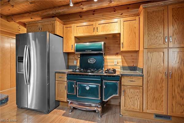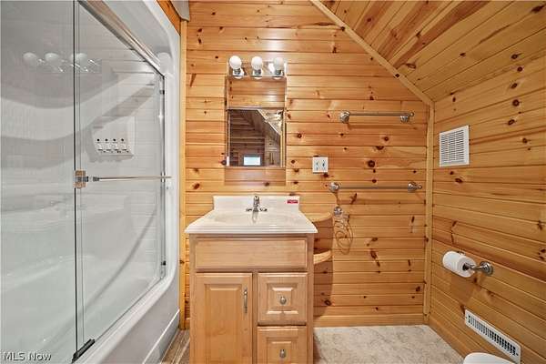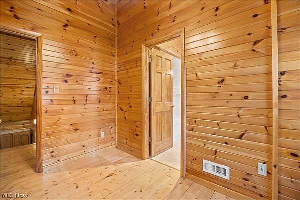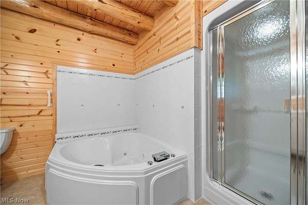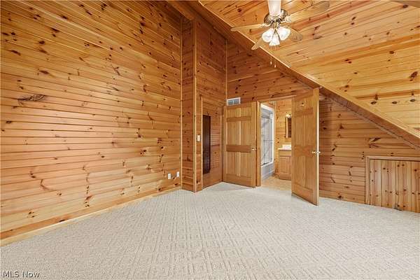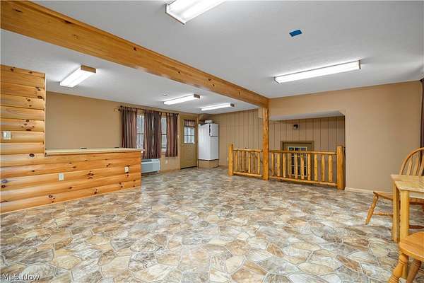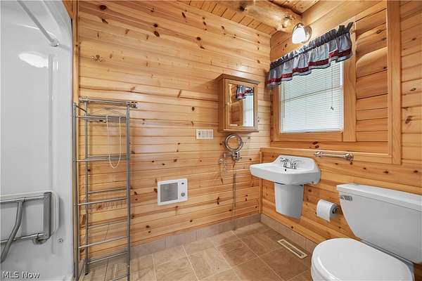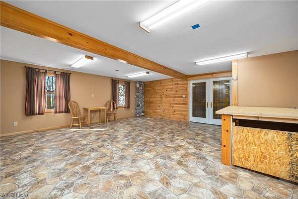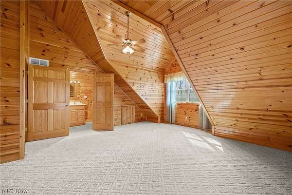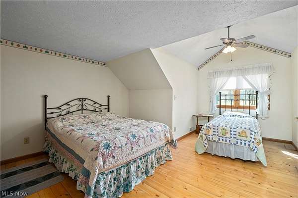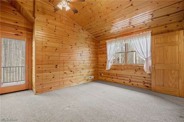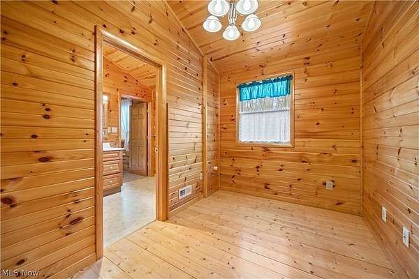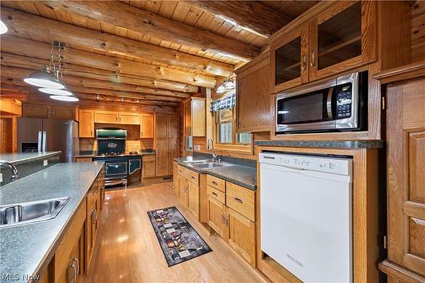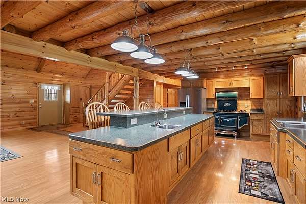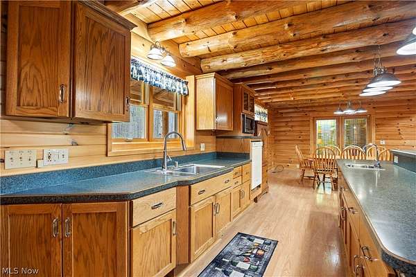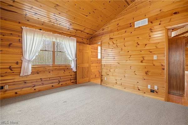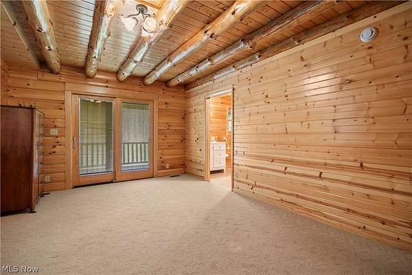 Welcome to 13719 Garfield Rd - a stunning Amish-built log cabin nestled in Wakeman, Ohio, Florence Township. This extraordinary 3,600+ sqft home features 5 bedrooms and 5.5 bathrooms, including four luxurious bedroom suites with full baths. The breathtaking open living room boasts soaring vaulted ceilings tall enough for an 18-foot Christmas tree, anchored by a custom stone fireplace with a dramatic loft overlooking the space. Enjoy the wraparound porch and expansive 21x21 balcony for peaceful countryside views. A full basement adds tremendous storage space and indoor shop, that could be finished. There is a second stairwell that leads from the basement to a large flex area between the garage and house that has its own heat/cool pump. Geothermal heating and cooing. A heated 3.5-car garage with a full bathroom offers incredible convenience, while finished rooms above the garage provide a separate apartment - ideal for additional living space. Located in the desirable Firelands School District near Birmingham School MetroPark, this one-of-a-kind retreat delivers rustic elegance at every turn. This home was built as "Cabin in the Woods Bed and Breakfast" and every review mentioned how Beautiful the home and the setting is. The 5.18 Acres is about 1/2 woods with a small brook and quaint wooden bridge. The front yard, approximately 2 acres, has a huge garden area. I could keep going but this place is a must see to believe!