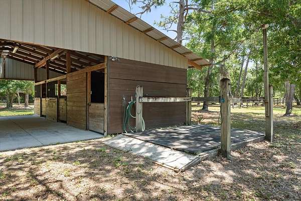 Wimauma and just minutes from Parrish. Thoughtfully crafted for horse lovers and country lifestyle seekers alike, this versatile property spans two 5-acre parcels, offering serene, pastoral living with every amenity for your equine companions and homesteading dreams! At the heart of the property, you'll find a well-appointed 5-stall barn, complete with a tack room and a wash stall just outside, creating a streamlined space for daily care and grooming. Three fenced paddocks offer generous room for rotation and turnout, while the expansive pasture is ideal for setting up a custom show jump course... a rare find for riders training at home! The 2,400 sq ft residence welcomes you with a bright, open-concept floor plan, featuring 2 bedrooms, 2 bathrooms, and a flexible bonus room perfect as a home office, creative studio, cozy den, or even a third bedroom. A wrap-around porch, screened on three sides, invites you to savor sunrise coffee and sunset views over the peaceful countryside. For added indoor-outdoor connection, every room in the home features its own private door to the outside, allowing you to fully embrace the surrounding natural beauty. Behind the home, a massive workshop, flanked by dual storage wings, offers ample space and is perfect for trailers, tools, farm gear, or your next big project. RV enthusiasts will appreciate the dedicated electrical hookups for RVs, complete with 50-amp and 30-amp breakers, making this retreat ideal for hosting guests or embracing a nomadic lifestyle with ease. Whether you're an equestrian enthusiast, a hobby farmer, or simply seeking a private, peaceful lifestyle, this is truly a one-of-a-kind gem. With easy access to Parrish, Sun City Center,