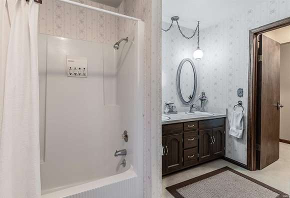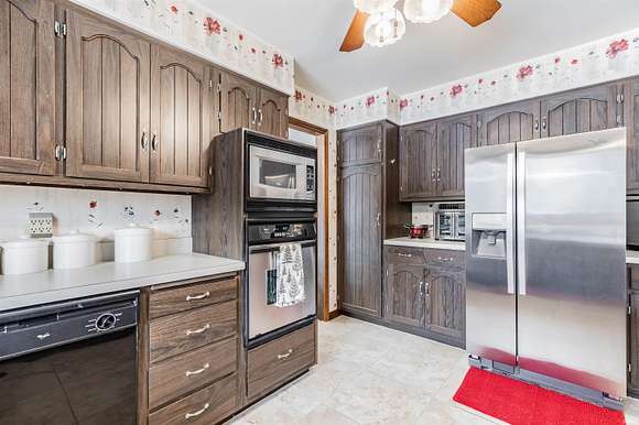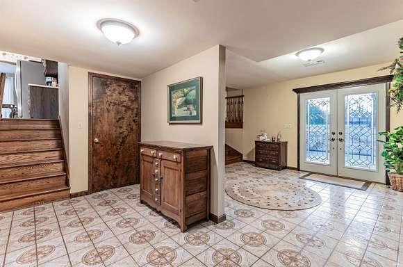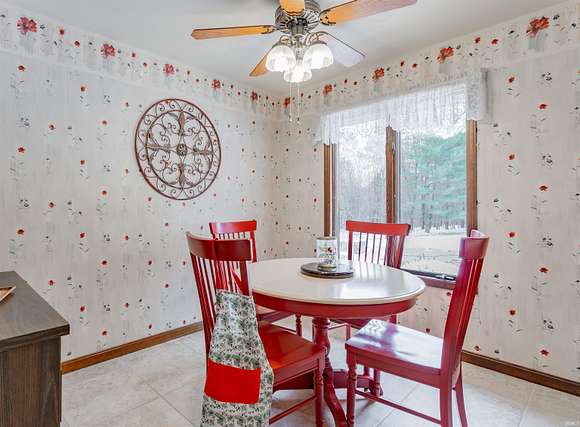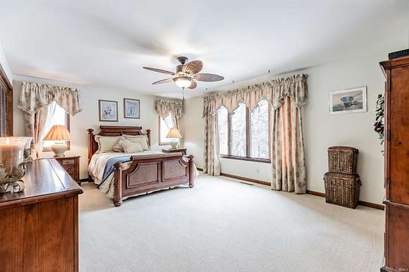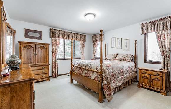 Welcome to this custom-built home by Elpers & Sons. Featuring 4 beds, 3 baths, 2.5 acres, & Saltwater pool. Meticulously maintained & offering spacious rooms, loads of storage, plus unfinished basement. Large covered front porch upon entering though French front doors, you'll be welcomed into an expansive foyer showcasing a custom-made curved wooden staircase which is centrally displayed but still very open. Natural light streams in through all windows providing stunning views of nature.The family room & living room boast custom stone wood-burning fireplaces. The family room fireplace has a wood-burning insert w/ a 14-foot hearth, providing efficient heating w/ average utility bills are $179. The custom cabinetry throughout the kitchen, bathrooms, & family room is a testament to the quality craftsmanship of Fehrenbacher. The kitchen offers an abundance of kitchen cabinets, pantry, Whirlpool appliances, Jen-Air cooktop, & wall oven. The breakfast nook is open to the kitchen & has an amazing view of the land lined w/ trees. Indoor-outdoor access is made easy w/ sliding glass doors from the family & dining room, leading to an outdoor patio & pool area which is perfect for entertaining while offering a serene & private setting. Additionally, there's a rear entrance to the pool area, which offers a full bath inside & just steps away. The family room is surrounded by windows & sliding doors that provide a picturesque view of the beautiful grounds. Upstairs, are 4 beds w/ 2nd bathroom in the hallway. All spacious rooms including a 20 x 14 owner's suite w/ large shelved walk-in closed & bathroom w/ custom walk-in tiled shower. The basement could easily be finished & still offer loads of storage w/ laundry area w/ area for hanging & cabinets for storage. The heated attached garage has beautiful epoxy floors & is 25 x 26. NEW OVEN JUST INSTALLED!