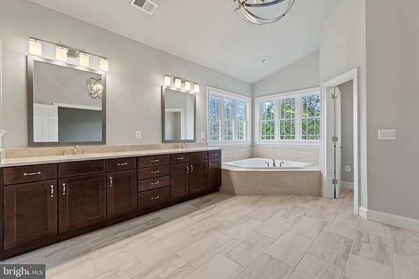Welcome to the Estate Atlantis II, a breathtaking 4,600-square-foot residence designed for both elegance and comfort. With thoughtfully crafted spaces, modern amenities, and luxurious finishes, this home is perfect for those who seek a refined living experience. The main-level en-suite is a private sanctuary, featuring a spa-like bathroom with a freestanding soaking tub, an oversized shower, double vanities, and a separate water closet. Designed with relaxation in mind, this space offers the ultimate in comfort and style. The main level boasts a versatile study, a formal dining room for hosting elegant dinners, and a spacious family room perfect for gatherings. The adjoining sunroom is filled with natural light, creating a serene space for relaxation or entertainment. The heart of the home, the gourmet kitchen, features a large island, stainless steel appliances, and a walk-in pantry, offering ample storage and functionality for any chef. The main-level laundry room is thoughtfully placed for ease of use, combining practicality with convenience. The upper level includes three generously sized bedrooms, each with its own private full bathroom. These suites ensure privacy and comfort for family members or guests, making this home ideal for multigenerational living. The expansive unfinished basement provides endless possibilities to customize the space to your needs. With two full-sized windows and a double-door walkout, this area offers abundant natural light and direct access to the outdoors. The Estate Atlantis II is a masterpiece of thoughtful design and luxurious finishes. From its grand size to the high-end details throughout, this home is built to impress. Don't miss your opportunity to build your dream home! * This home is to be built- photos are of likeness*