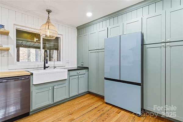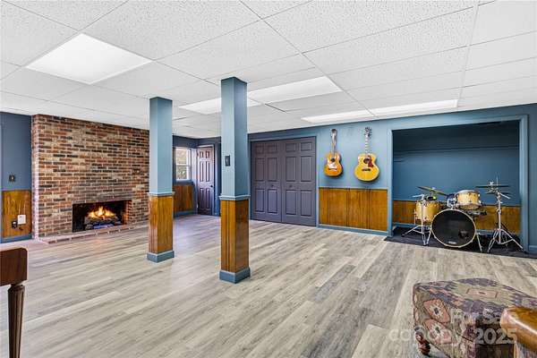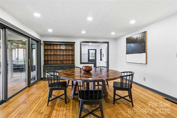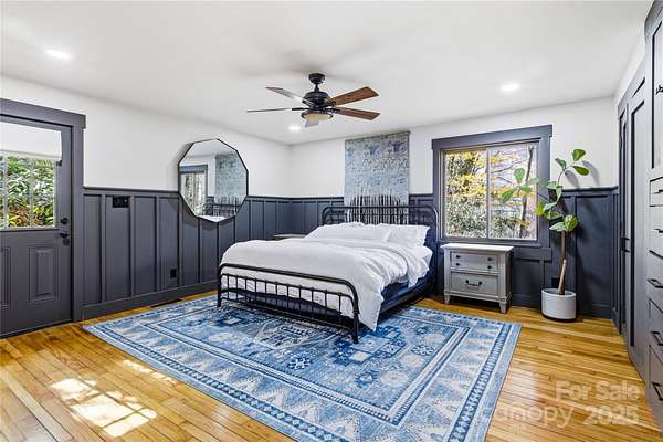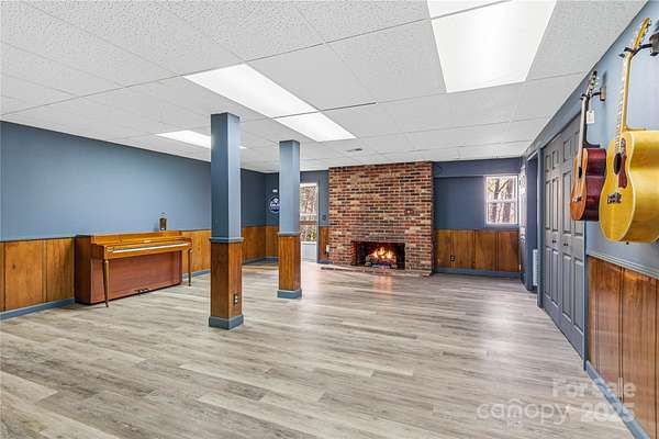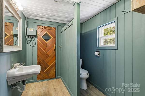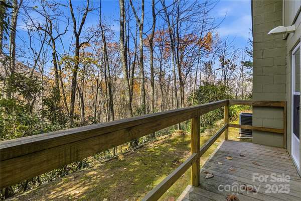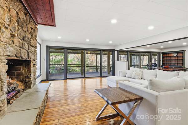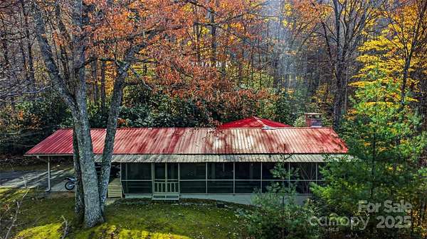 Alluring and recently renovated, this captivating Mid-Century Modern Mountain Retreat offers a rare opportunity to embrace the sweeping 180-degree views of the Great Smoky Mountains. Set in a private and peaceful setting, the home invites you to relax with the rhythm of mountain life-where whispering breezes and golden light fill every space. The expansive 700 SF screened deck provides the ideal canvas for your dream outdoor lifestyle, while juist steps away, the neighborhood's scenic 2-mile loop trail meanders past multiple waterfalls gliding by majestic trees. Enjoy a warm and welcoming community and make friends for life at the annual fall dinner party, then sign up for a jubilent evening out in downtown Waynesville-the gateway to the Great Smoky Mountains National Park-just 15 minutes away. Fine dining, live entertainment, and all modern conveniences are just minutes away. This beautifully maintained, rock-solid home has been thoughtfully updated throughout. The fully remodeled kitchen (2025) features custom shiplap walls, deep cabinetry, butcher block and granite countertops, a reverse osmosis water filtration system, Samsung Bespoke refrigerator, GE Profile 4-burner gas range, farmhouse sink, and a sliding window that connects effortlessly to the outdoor entertaining area. The open-concept dining and living spaces are highlighted by a stunning stone gas fireplace, new recessed lighting, and red oak hardwood floors that continue throughout the main level. Two generous bedrooms and preserved 1960s tile bathrooms add to the home's charm. The spacious primary suite includes custom closets and a private back door where you can step out to enjoy the tranquil sounds of the on-site creek. Other recent upgrades include a full-house HVAC system, new water heater, fresh exterior paint, and low-maintenance landscaping with little to no grass to mow-making this home truly move-in ready. The lower level, likely finished in 1986 with a 2-bedroom septic system on file, offers over 820 SF of flexible open space plus a 370 SF workshop. Features include a gas fireplace, full sauna and shower, and an additional deck-ideal for a guest suite, recreation area, hobby space, or home office. The possibilities are endless in this exceptional mountain haven.