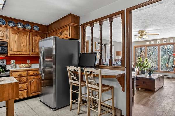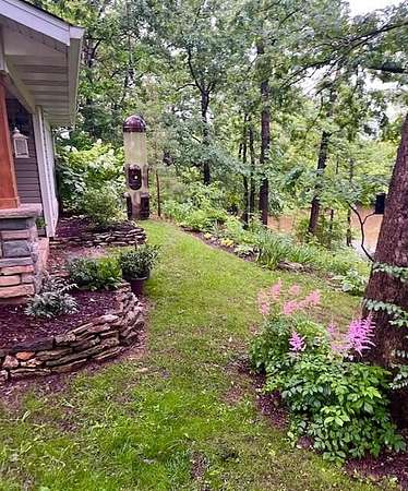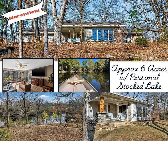 Don't miss the aerial video--this property is truly stunning! This private lake retreat in Marshfield offers peaceful seclusion while remaining just minutes from shopping, dining, and everyday conveniences. Tucked away at the end of a private, winding drive, this 2-bedroom earth-berm home overlooks a private, stocked lake with a dock and picturesque, tree-lined views.The property borders the East Fork of the Niangua River and features a year-round freshwater spring located in one of the coves feeding into the lake--an incredibly rare and desirable feature. Outdoor living shines with multiple firepit areas, walking trails, scenic lake vistas, an above-ground pool, chicken coop, and 2 storage sheds (8'x12' & 10'x16') offering both lifestyle and functionality.Inside, the home feels like a true lake vacation getaway, with large windows capturing the surrounding natural beauty. Many rooms have been freshly painted, and new carpet has been installed in the spare bedroom. The all-electric setup helps keep utility costs low. Major exterior updates have already been completed, including a new roof, siding, gutters, and soffits--making this home truly move-in ready.Enjoy the feeling of being miles away from it all while still less than 10 minutes from food and shopping. A rare opportunity for private lake living--offered for under $300K.