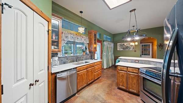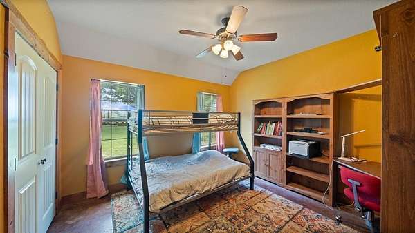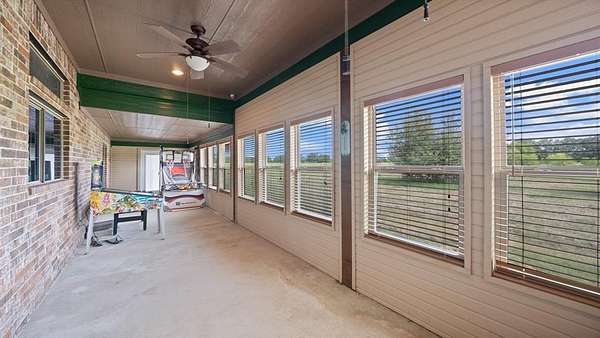 - Covered Deck, Covered Patio/Porch, Fence, Lighting, Rain Gutters, Stable/Barn, Storm Cellar