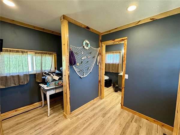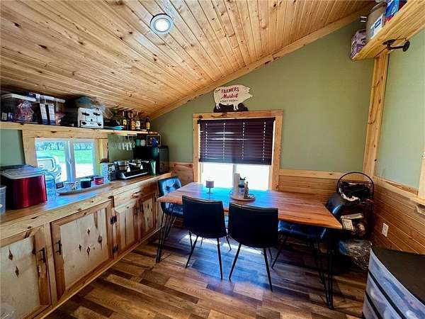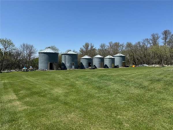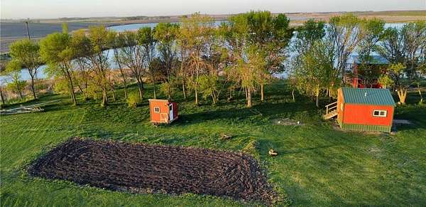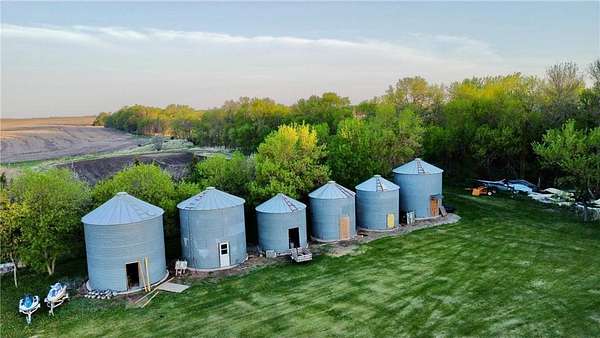 The property also features a spacious 50x70 steel building, complete with heated and cooled office space, a hobby room, and abundant storage. There are also converted grain bins now used as additional storage. You'll also find a 1+- acre food plot, a lakefront garden, and a nearby storage shed--all framed by mature shelter belts that enhance the secluded, retreat-like atmosphere.