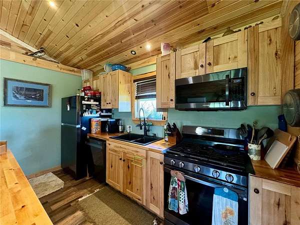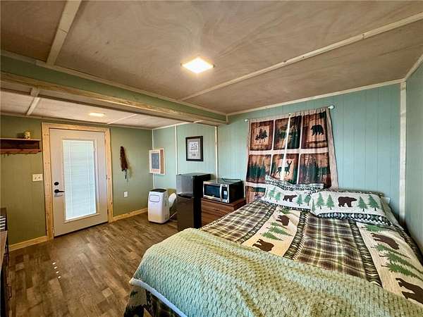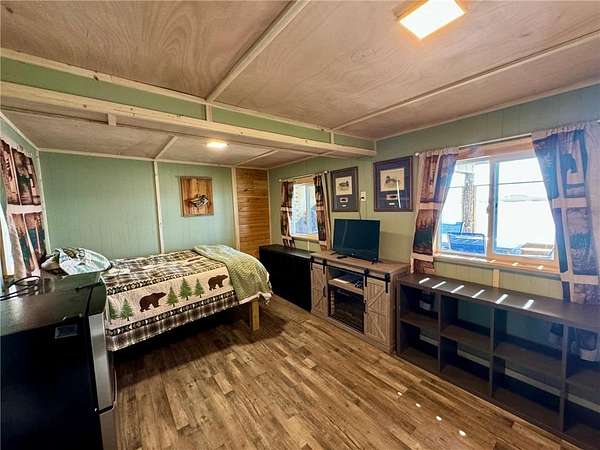 At the entrance to the property, a charming year-round main cabin (approx. 700 sq. ft.), built in 2020, offers cozy, modern comfort with a bedroom, bath, full kitchen, propane and mini-split heating, and a covered front porch perfect for taking in the view. It was thoughtfully designed to be relocated closer to the water, leaving the door open for future homebuilding on the original site.
