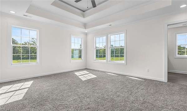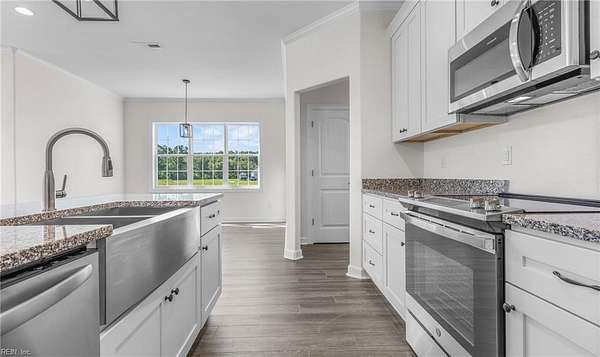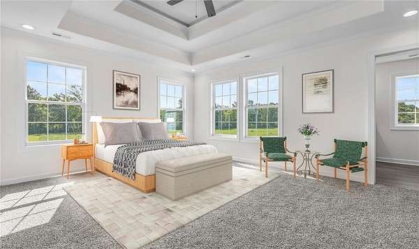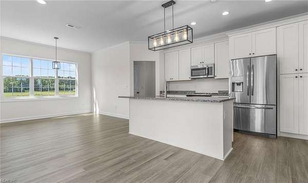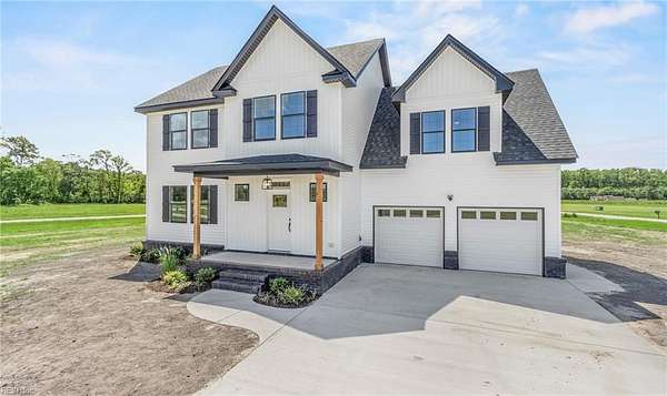 This 5-bedroom, 3.5-bath home sits on 12+ acres in North Pasquotank County, just 15 minutes from the VA line and under a mile from I-17. The open floor plan features two primary suites (one on each level), both with walk-in closets and full baths. Designed for style and function, this home offers your choice of exterior colors and includes upgrades as standard--no costly add-ons needed. Enjoy LVP flooring throughout the first floor, real wood shelving in closets, and granite countertops with soft-close cabinetry in the kitchen and all bathrooms. The chef's kitchen showcases a large island, stainless steel appliances, and generous counter space. Upstairs, a second-level laundry is accessible from the hallway and primary suite. Relax on the covered back patio and enjoy your private retreat.