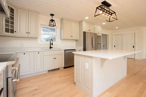 Completely transformed with thoughtful craftsmanship, this ranch-style home was taken down to the studs and rebuilt with modern comfort and style in mind. New insulation, windows, finishes, and more bring peace of mind and effortless living. Step inside to a bright, open layout where the kitchen, dining, and living spaces flow beautifully together, filled with natural light and an inviting, airy feel. The kitchen offers an island, generous counter space, plentiful cabinetry including a pantry, and seamless access to the dining area. A sliding door leads to the front deck, perfectly positioned to enjoy a lovely mountain view. The primary suite feels like a retreat, featuring a walk-in closet and a private full bath with double sinks. The main level also includes a convenient half bath with laundry, plus a new mudroom addition with direct entry to the spacious two-car garage. Thoughtfully designed with hard-surface floors and wider doorways, the main level offers comfortable single-level living. The finished lower level expands your living options, featuring a roomy family space, full bath, and two additional bedrooms ideal for guests, hobbies, or working from home. Set on 3.38 acres in a peaceful Barnet country setting, you'll enjoy quiet surroundings without sacrificing convenience. Just a few miles from Route 5 and St. Johnsbury amenities, this home blends tranquility with easy access to town. Light, bright, beautifully renewed, and truly move-in ready.