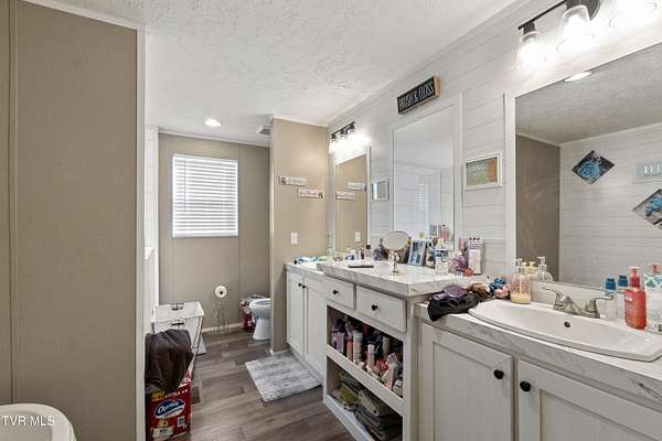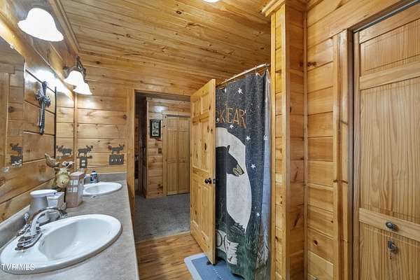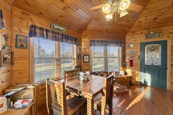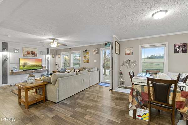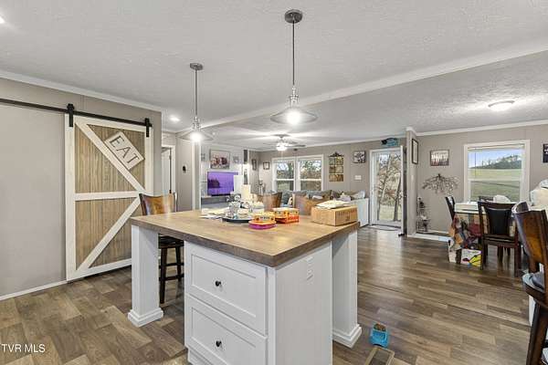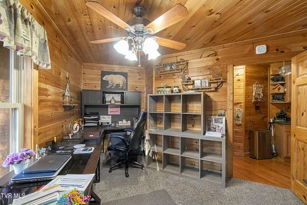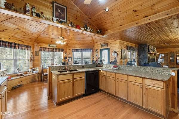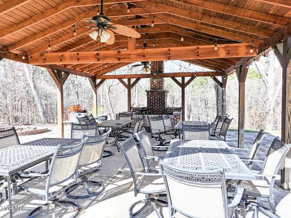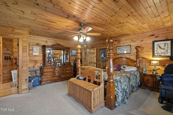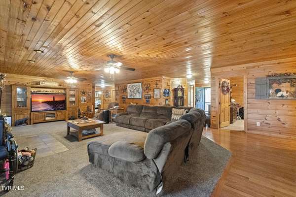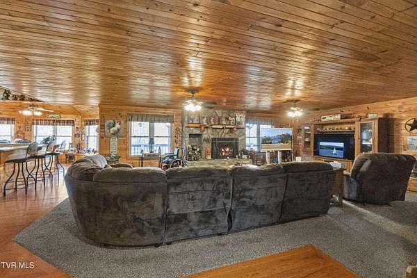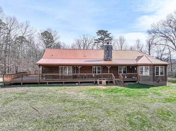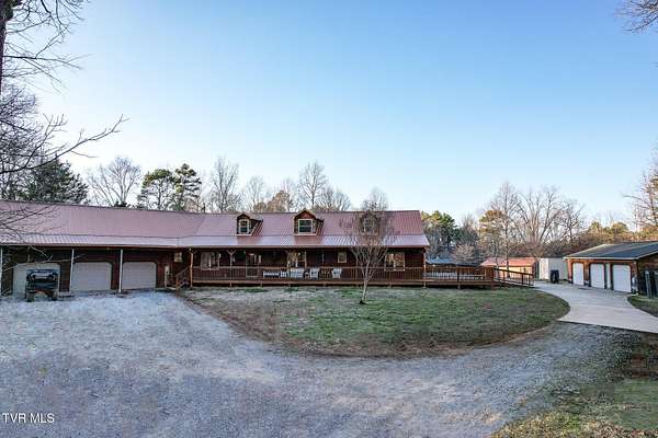 Escape to your own private East Tennessee retreat with this exceptional ranch-style cabin nestled on 16.4 acres in beautiful southern Greene County. Offering a total of 2,816 square feet in the main home plus a 2024-built guest residence, this property blends rustic charm, modern updates, and incredible outdoor amenities. The main cabin features four bedrooms and three and a half baths with an inviting open-concept design. Tongue-and-groove walls and a massive stone fireplace anchor the spacious great room, creating a warm and welcoming focal point. The kitchen is thoughtfully designed with quartz countertops, stainless appliances including a gas range, abundant cabinetry, and two pantries -- one being a walk-in with a charming farmhouse door. The dining area is perfectly positioned in a bay window overlooking the backyard. The oversized primary suite offers a bay window, walk-in closets, and a spacious bath with dual vanities and a walk-in shower. A second bedroom suite includes its own private full bath, while two additional bedrooms, an office, laundry room, and additional bath and half bath complete the well-designed layout. Recent upgrades include a copper roof with commercial 8-inch gutters, hardwood flooring, newer carpet, updated kitchen countertops, gas range, on-demand tankless water heater, and an expanded walk-in pantry. Double-pane tilt-out windows, a fully encapsulated basement, and a large floored semi-finished attic/storage area add efficiency and convenience. Outdoor living is unmatched with 1,198 square feet of covered front and back porches plus an expansive side deck. Entertain in style under the 25x30 covered pavilion featuring electricity, a stage, built-in barbecue pit with brick chimney, and a 10-foot in-ground fire pit just steps away. The acreage is trail-laden and ideal for ATV riding, hiking, biking, or horseback adventures. Car enthusiasts and hobbyists will appreciate the attached three-car garage, an additional three-car detached garage, plus a separate two-car detached garage. An RV parking pad with hookup sits conveniently beside the two-car garage. The second residence is a 1,944 square foot 2024 Clayton Homes ''Farmhouse Breeze'' double-wide featuring four bedrooms and two baths with an open floor plan and mountain views. A small portion of the driveway is shared with a neighbor, with a recorded driveway agreement in place. This one-of-a-kind property offers privacy, versatility, and endless possibilities -- whether for multi-generational living, rental income, or simply enjoying your own private estate. A truly special opportunity worthy of serious consideration. All information taken from a third-party source (courthouse/tax records) and to be verified by the buyer/buyer's agent. Drawn in lines are approximate. Some elements (fires in fireplaces, twilight shading, lighting, etc.) have been added/modified digitally. Rooms noted have been virtually staged for decorating ideas only, not to scale or representative of any product.