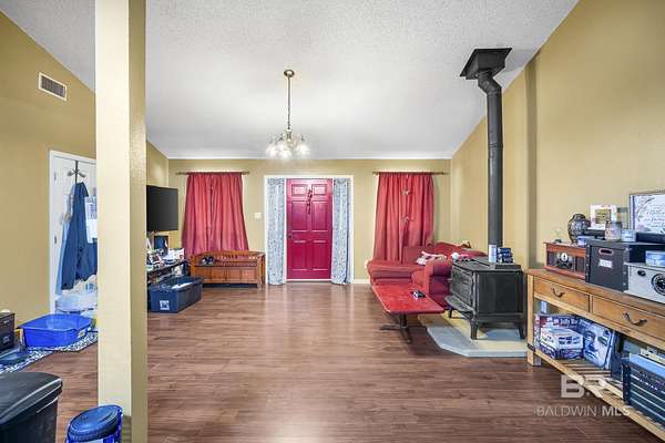 This stately, brick home sits on over 3 acres along a private lane overlooking peaceful Magnolia Creek, offering the perfect blend of privacy and open space. Enjoy the serene views from the sunroom, surrounded by beautiful trees and fruit-bearing plants -- including plum and cherry trees, plus blueberry and blackberry bushes. Inside, a unique floor plan with separate outside access provides flexibility for a home office, guest suite, or multi-generational living. The primary suite is on the main level, with all secondary bedrooms upstairs. Multiple large gathering areas and flex spaces offer room for everyone. Originally built in 1995, the home was expanded around 2006 to include the converted garage and second floor. Property features well and septic (located in front), a covered storage area, which could be restored to it's original purpose: a chicken coop!!! In the back is a powered shed for additional storage or workshop use. Living off the grid has never been so convenient. All information is deemed reliable but not guaranteed. Buyer to verify all information during due diligence.