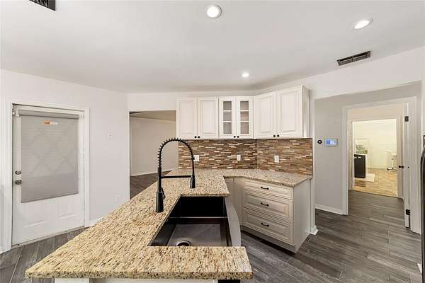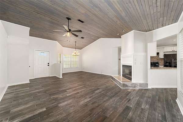 - Cathedral Ceiling(s), Ceiling Fans(s), Eat-In Kitchen, Kitchen/Family Room Combo, Living Room/Dining Room Combo, Open Floorplan, Primary Bedroom Main Floor, Split Bedroom, Stone Counters, Thermostat, Walk-In Closet(s)