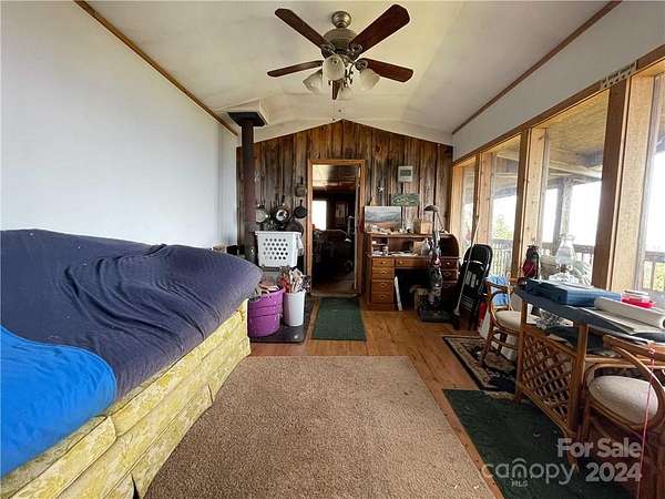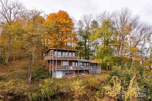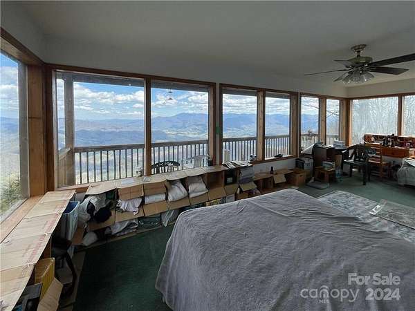 Arguably the best view anywhere in Western NC! These 50 +/- acres have a eastern slope giving way to a view spanning over 4 counties making for breathtaking sunrises. The original structure was built in the 80s as just a place to get away. The two story addition was built in 2000 and the middle connecting the two was constructed in 05-06. While the home has no power, there is a generator to power the lights and also the pump for the water system. Water is collected from a spring in a reservoir and pumped to a smaller holding tank above the home creating a gravity fed system. There can be no "drive-bys." There are two locked gates and the road up is currently ATV only. Must be accompanied by a Real Estate Agent.