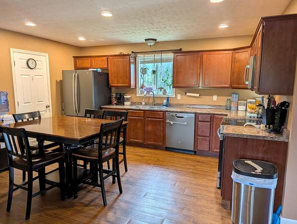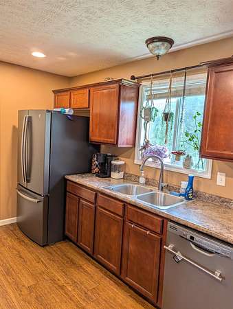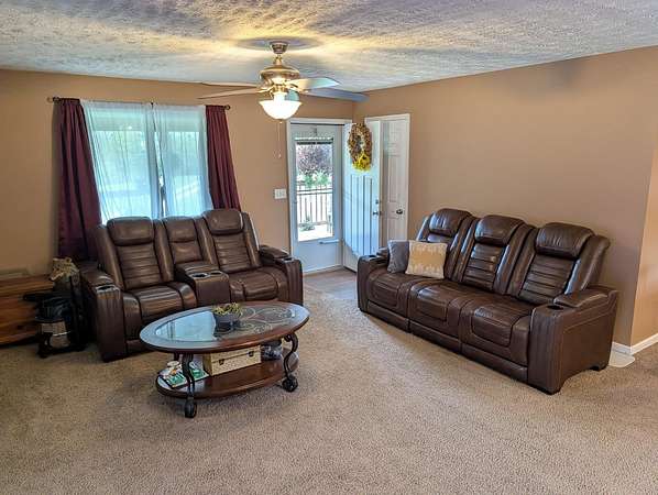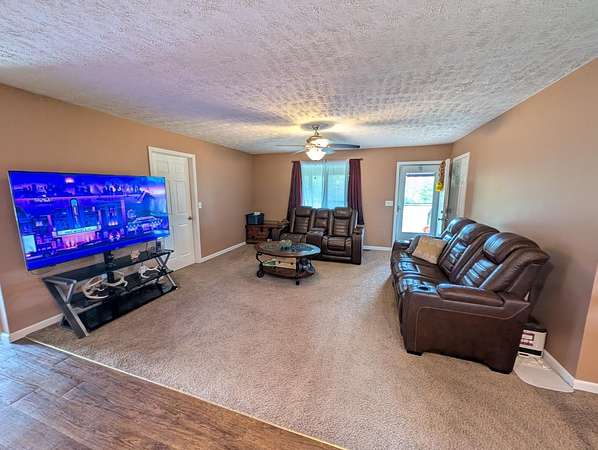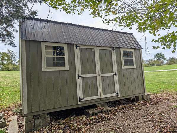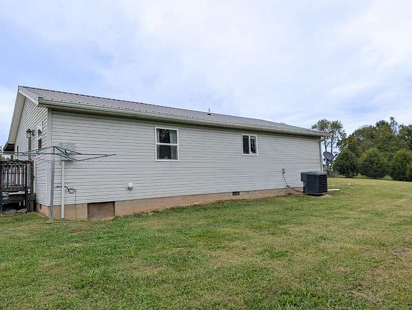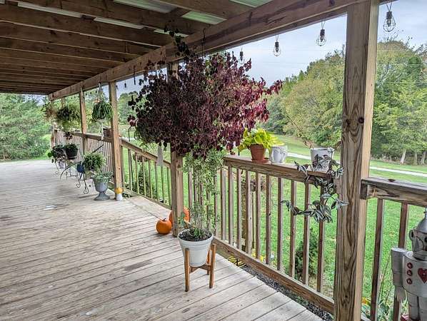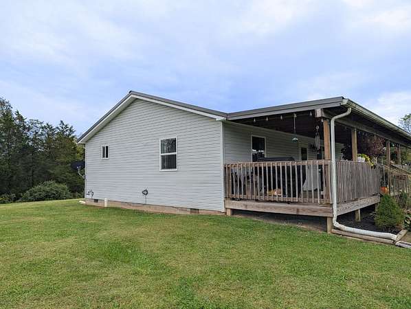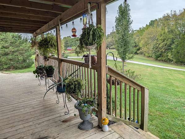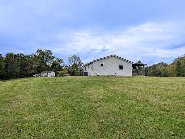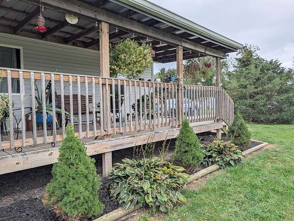 Presenting an exceptional opportunity to acquire a peaceful countryside retreat, this property is nestled on 10 acres, set back over 900 feet from the road. The property features an expansive garden, apple, peach & cherry trees, grapevines, blackberry & blueberry bushes, 2 storage sheds & abundant woods filled with wildlife & hunting possibilities. A generous front porch spans the entire length of the home, offering picturesque views of rolling hills & lush forest. The crawl space is fully sealed with a concrete slab underneath. Inside, this 2-3 bedroom residence boasts an open-concept living & kitchen area, complete with a pantry for ample storage. The thoughtfully designed split-bedroom floor plan ensures privacy, separating the primary bedroom from the other bedrooms. Fiber internet already installed. Recently refreshed with new interior paint & cleaned carpets, this home is move-in ready, combining rural charm with modern comfort.