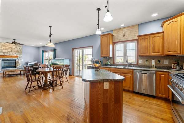 Nestled on 5 wide open acres, this spacious two-story home offers over 2,400 sq ft of finished living space with 4 bedrooms and 2.5 bathrooms, plus a full unfinished basement ready for your personal touch. The main floor welcomes you with a cozy living room featuring a stone fireplace, flowing seamlessly into the breakfast area and kitchen, perfect for everyday living. A formal dining room, dedicated home office, and a convenient half bath complete the main level. Upstairs, the generous primary suite includes a large walk-in closet, double sinks, a soaking tub, and separate shower, while three additional bedrooms, a full bathroom, and a laundry room provide comfort and functionality. Enjoy the peace and space of country living just outside the city on this beautiful acreage. Generator is included for vital recovery items in the home.