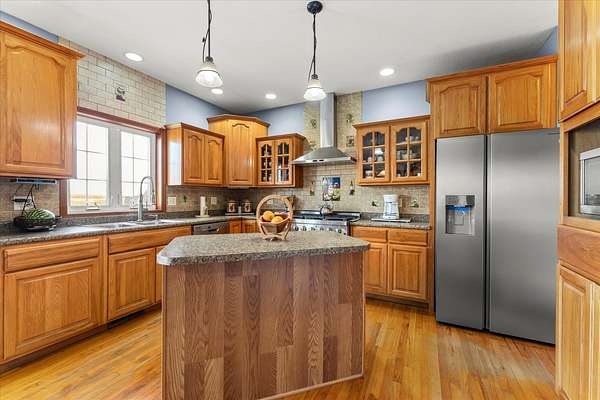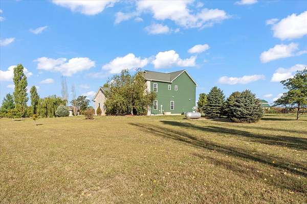 Nestled on 5 wide open acres, this spacious two-story home offers over 2,400 sq ft of finished living space with 4 bedrooms and 2.5 bathrooms, plus a full unfinished basement ready for your personal touch. The main floor welcomes you with a cozy living room featuring a stone fireplace, flowing seamlessly into the breakfast area and kitchen, perfect for everyday living. A formal dining room, dedicated home office, and a convenient half bath complete the main level. Upstairs, the generous primary suite includes a large walk-in closet, double sinks, a soaking tub, and separate shower, while three additional bedrooms, a full bathroom, and a laundry room provide comfort and functionality. Enjoy the peace and space of country living just outside the city on this beautiful acreage. Generator is included for vital recovery items in the home.