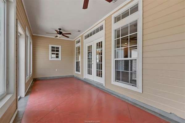 - Blinds/Shades, Ceiling Fan, Drapes/Curtains, French Doors, Garage Door Opener, Raised Ceiling, Smoke Alarm