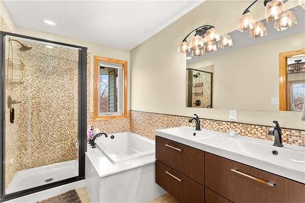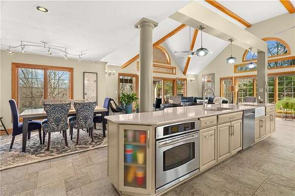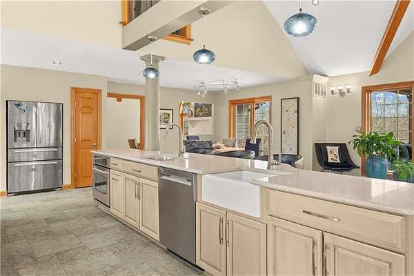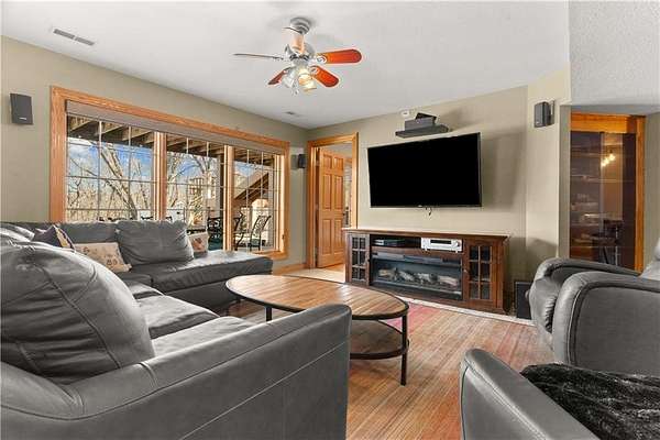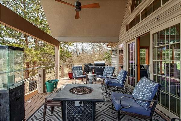 Secluded immaculate home with over $90k in updates. This one-of-a-kind spacious home is just minutes away from Lee's Summit shopping and restaurants. Gourmet kitchen offers lots of countertop space, walk in pantry. The kitchen is open to the Great Room with soaring vaulted ceilings and lots of windows. The Great Room walks out to wonderful, covered deck overlooking the tree-lined back yard and recently renovated inground pool for all your summer fun. The Master suite is on the main level, along with a second bedroom with a recently installed $13K custom closet system. There are 2 bedrooms on the upper level, one is a loft bedroom that you can open to overlook the Great room, and 3rd full bath. The lower level has rec room area, wet bar, 4th full bath, a fitness room and office or could be 5th bedroom or office. Large 2 car garage with epoxy floors. A 28'x24' outbuilding to store vehicles, lawn equipment or for extra storage. Beautiful yard with Sprinkler system and lovely landscaping. Enjoy nature on this 1.56-acre lot with private woods beyond the pool. Award winning Lee's Summit school district.