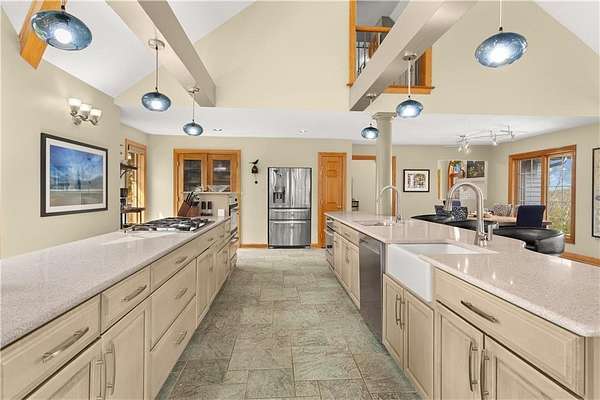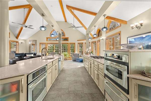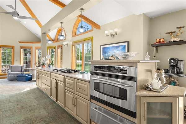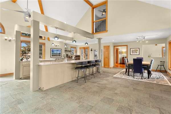 - Ceiling Fan(s), Central Vacuum, Hot Tub, Kitchen Island, Pantry, Vaulted Ceiling(s), Wet Bar