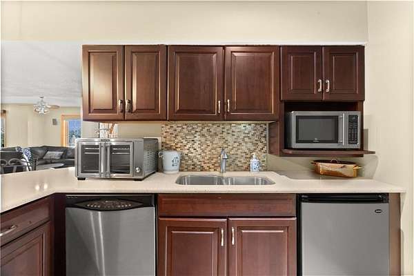 - Cooktop, Disposal, Electric Range, Microwave, Refrigerator